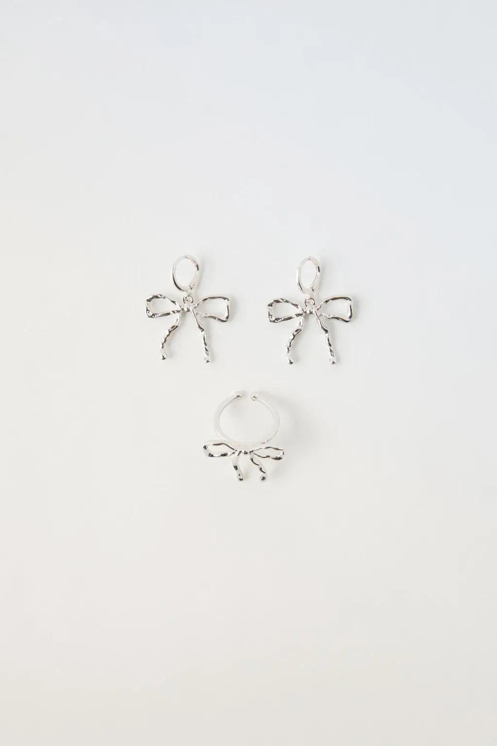 Pack de pendientes y un anillo ajustable con forma de lazo.
