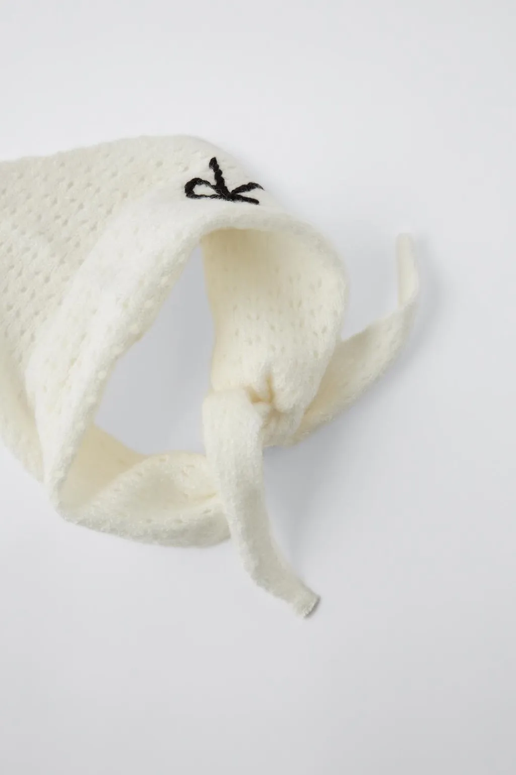 Pañoleta triangular de punto. Detalle lazo bordado a contraste.