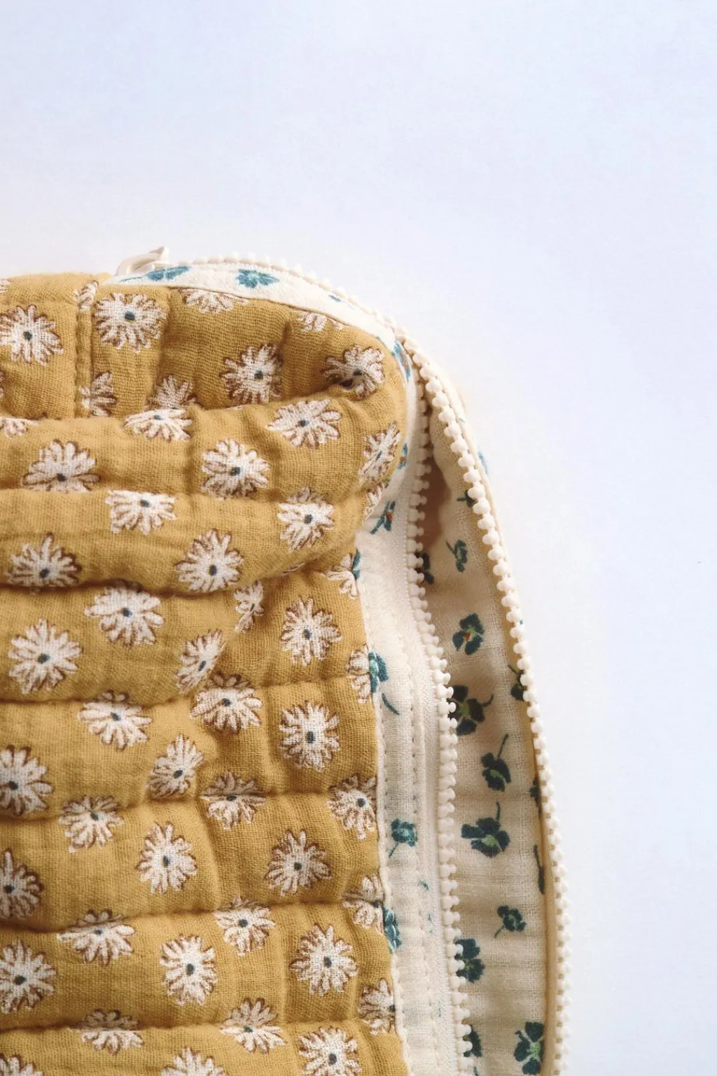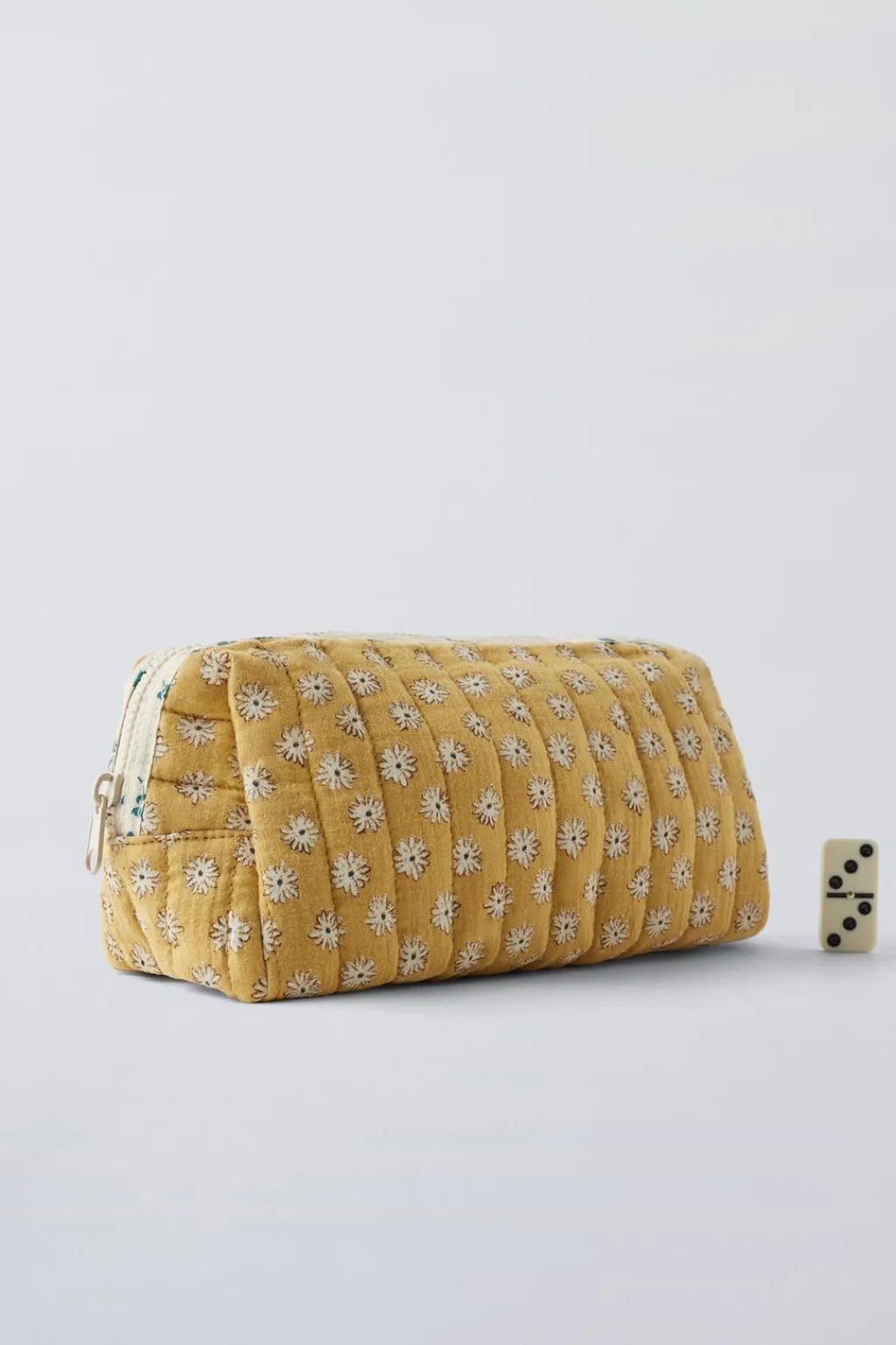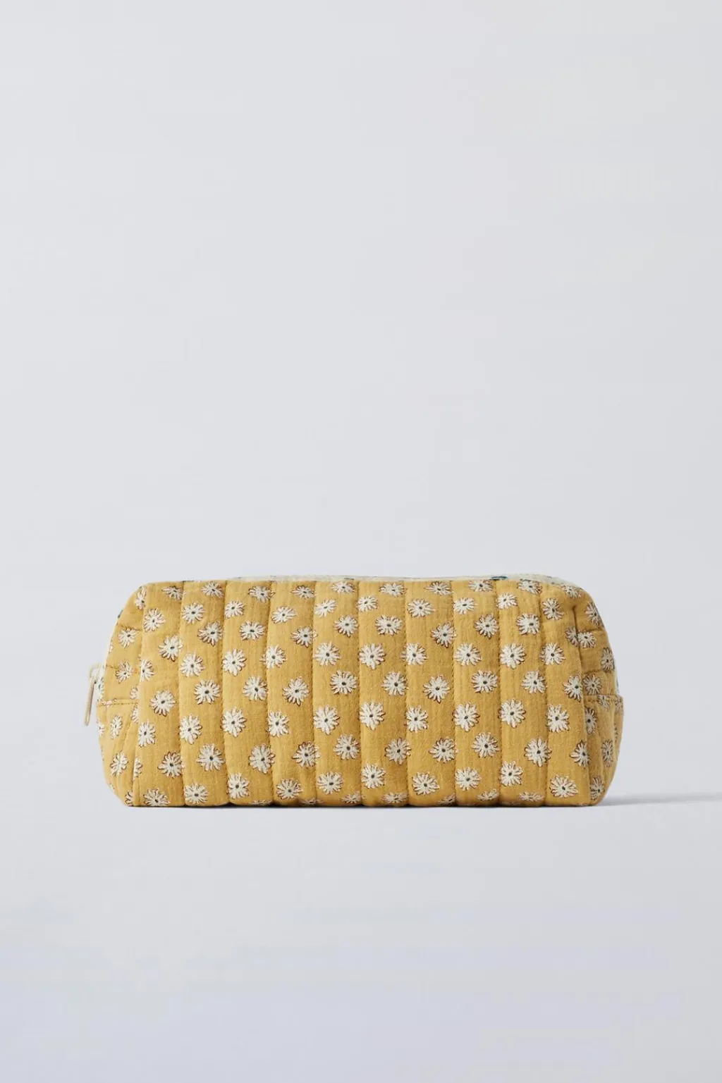 Bolsa tipo neceser con estampado de flores. Cierre mediante cremallera.