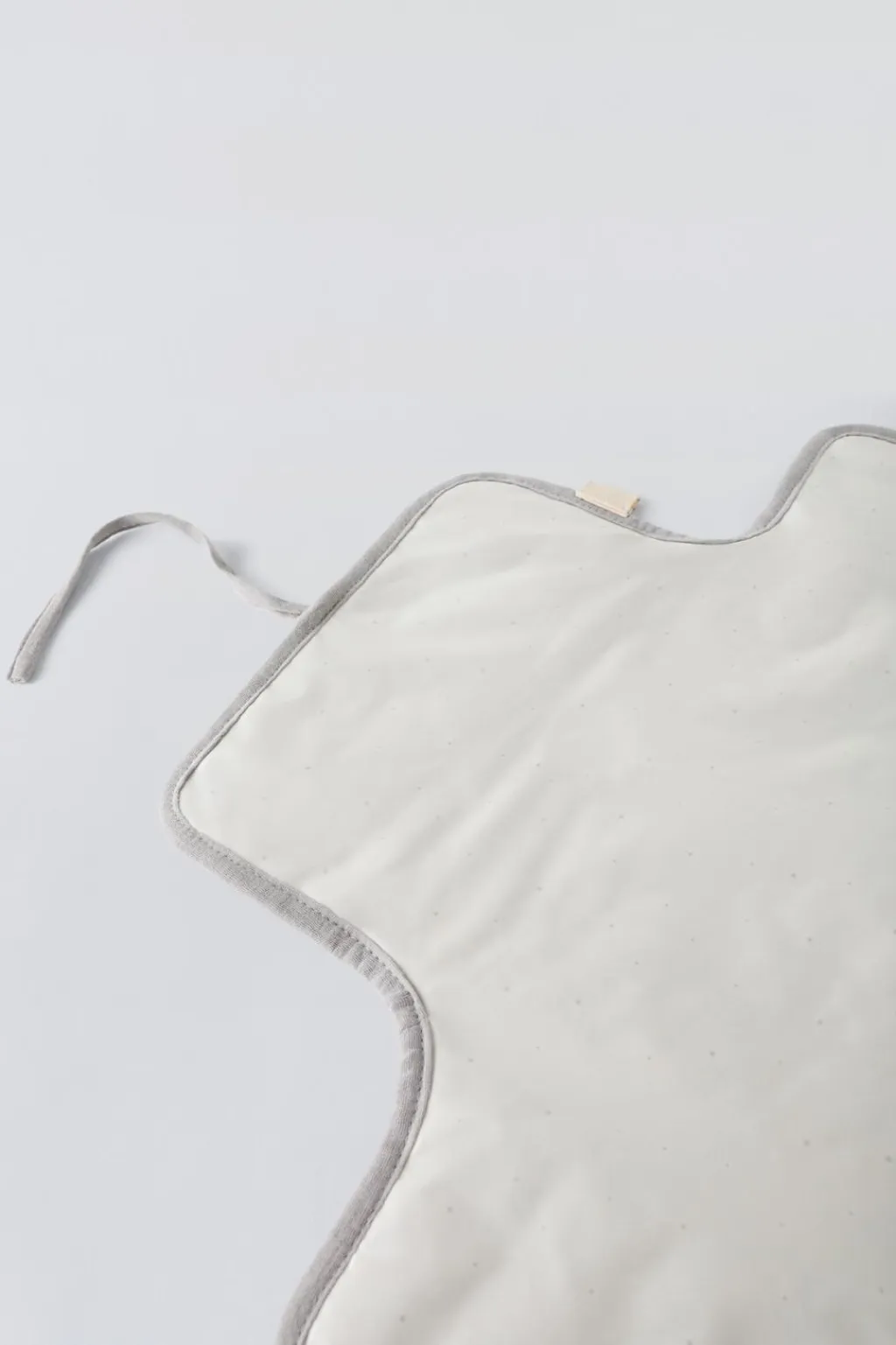 Bolsa de maternidad de algodón para pañales con cambiador a conjunto. Compartimento principal con cierre mediante cremallera. Cuenta con dos bolsillos frontales y dos laterales sin cierre. Doble asa de hombro y tiras adherentes adaptables y extraíbles para cochecito. Cambiador con cierre mediante tira adherente. Este pack es indivisible, se devolverá completo.