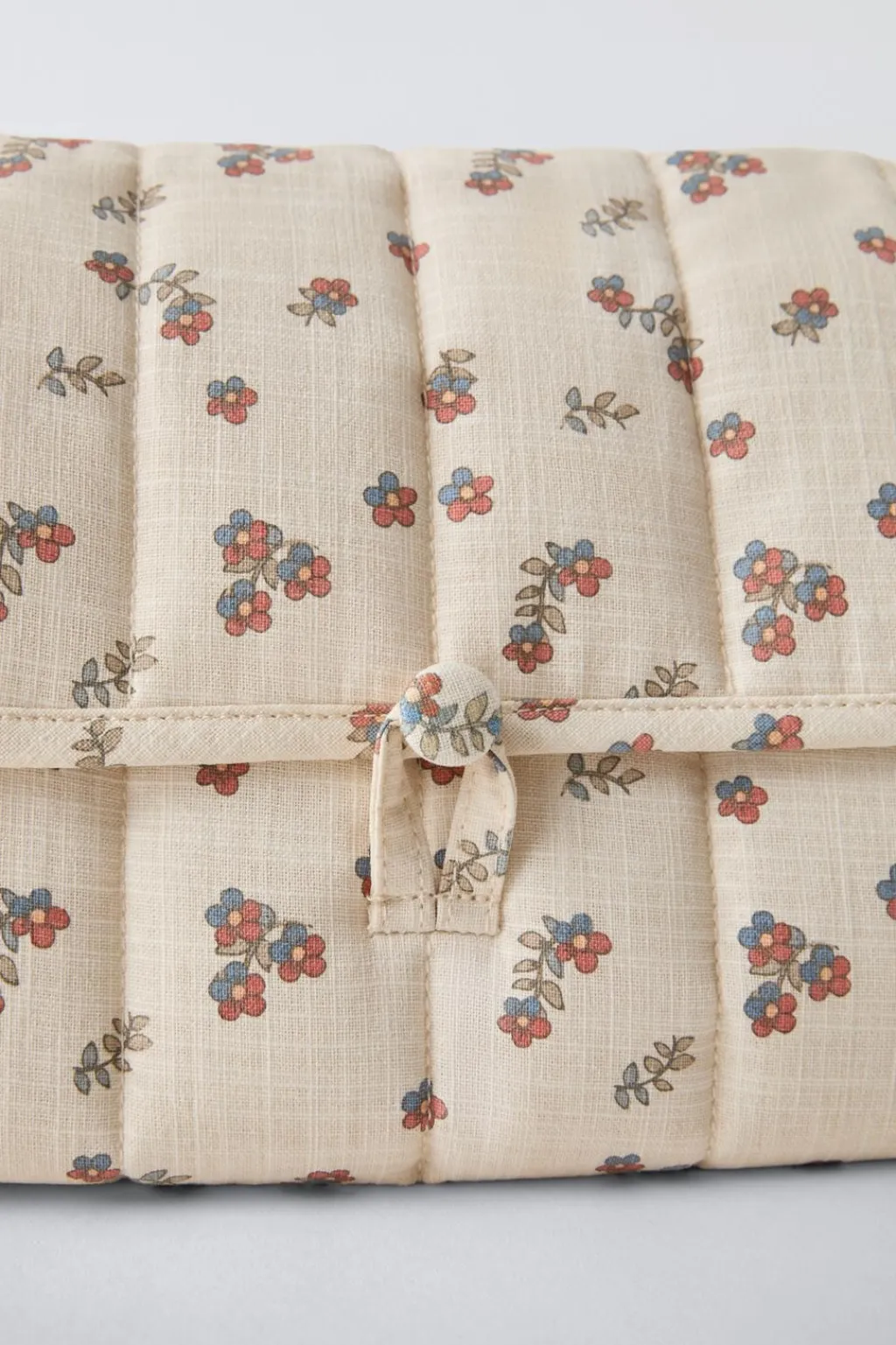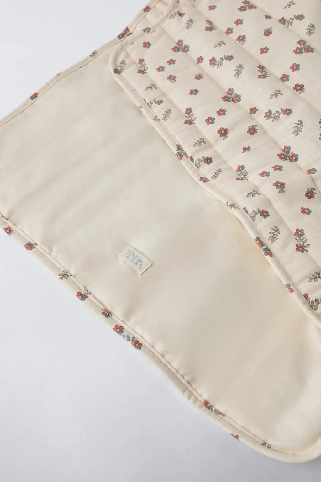 Cambiador rayas con estampado de flores y cierre mediante botón.