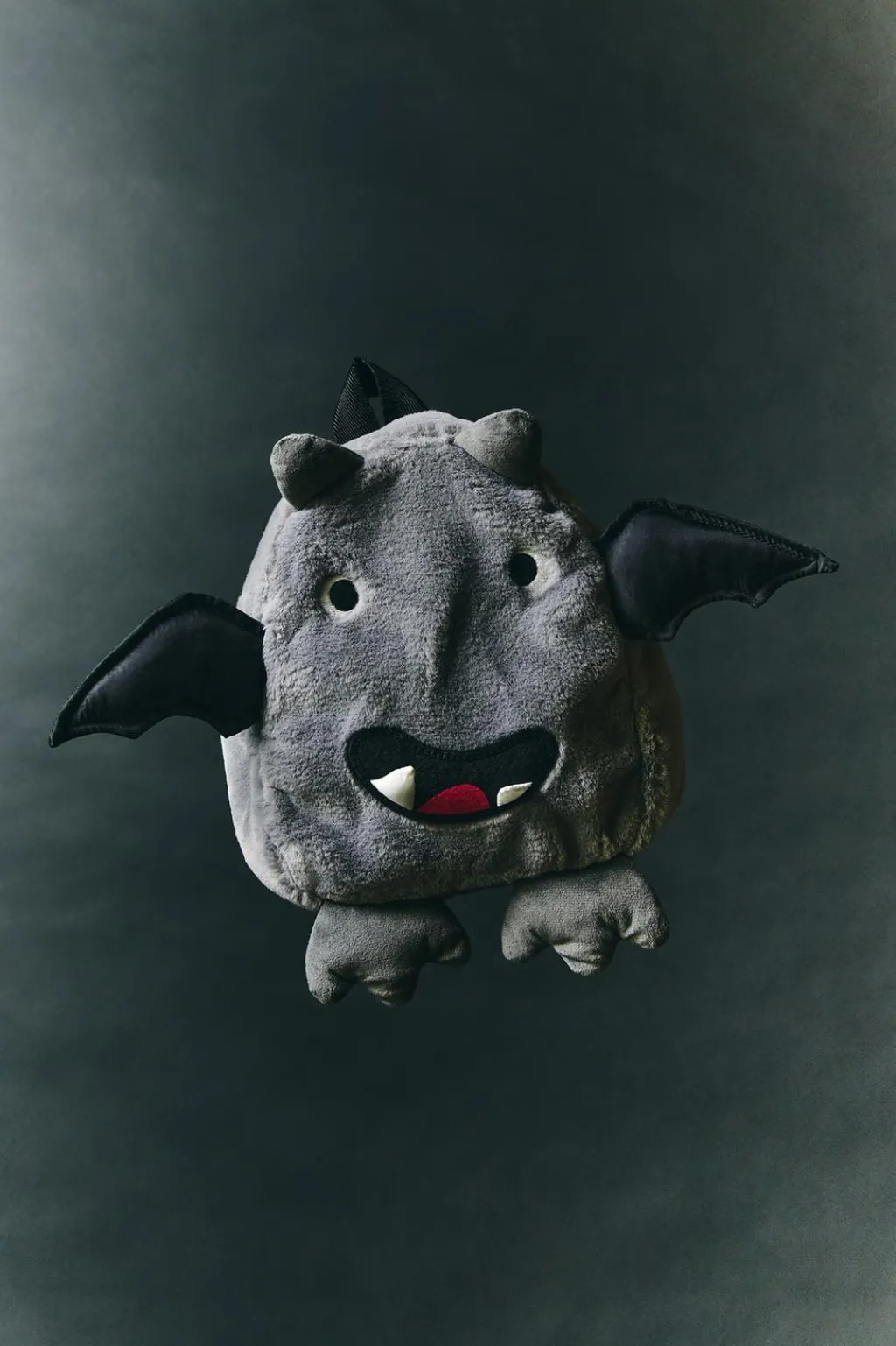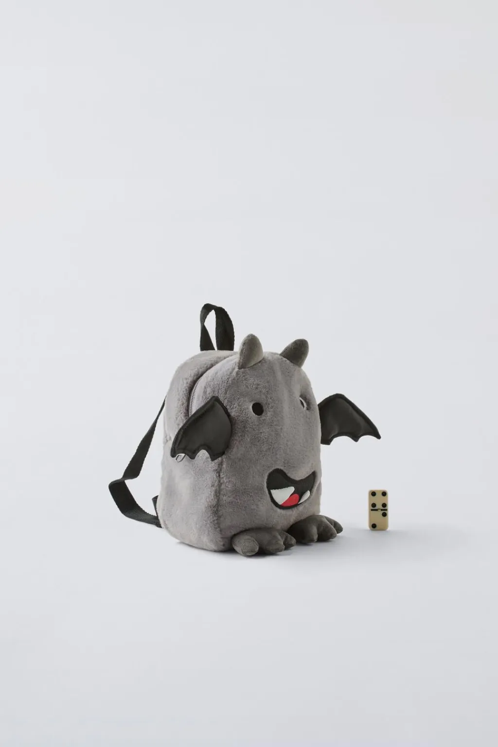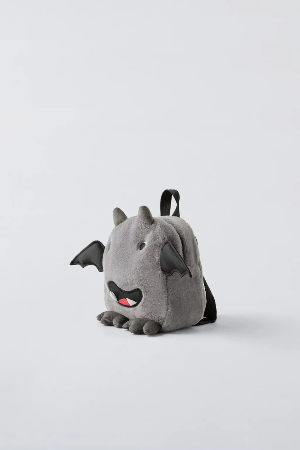 Mochila en forma de monstruito con pelo. Compartimento principal con cierre mediante cremallera. Asa de mano y doble asa de hombro ajustable.