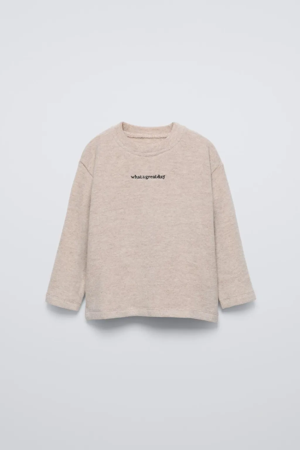 Camiseta con cuello redondo y manga larga. Detalle bordado en pechera. Tejido cálido y suave.