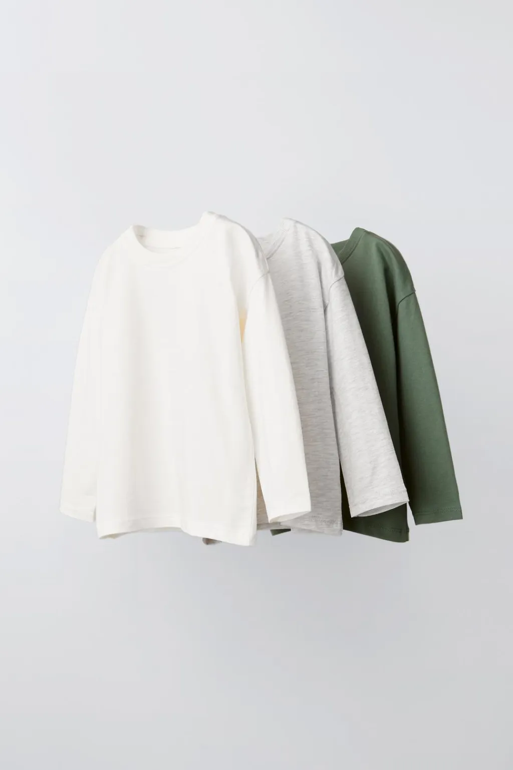 Pack de tres camisetas con cuello redondo y manga larga.