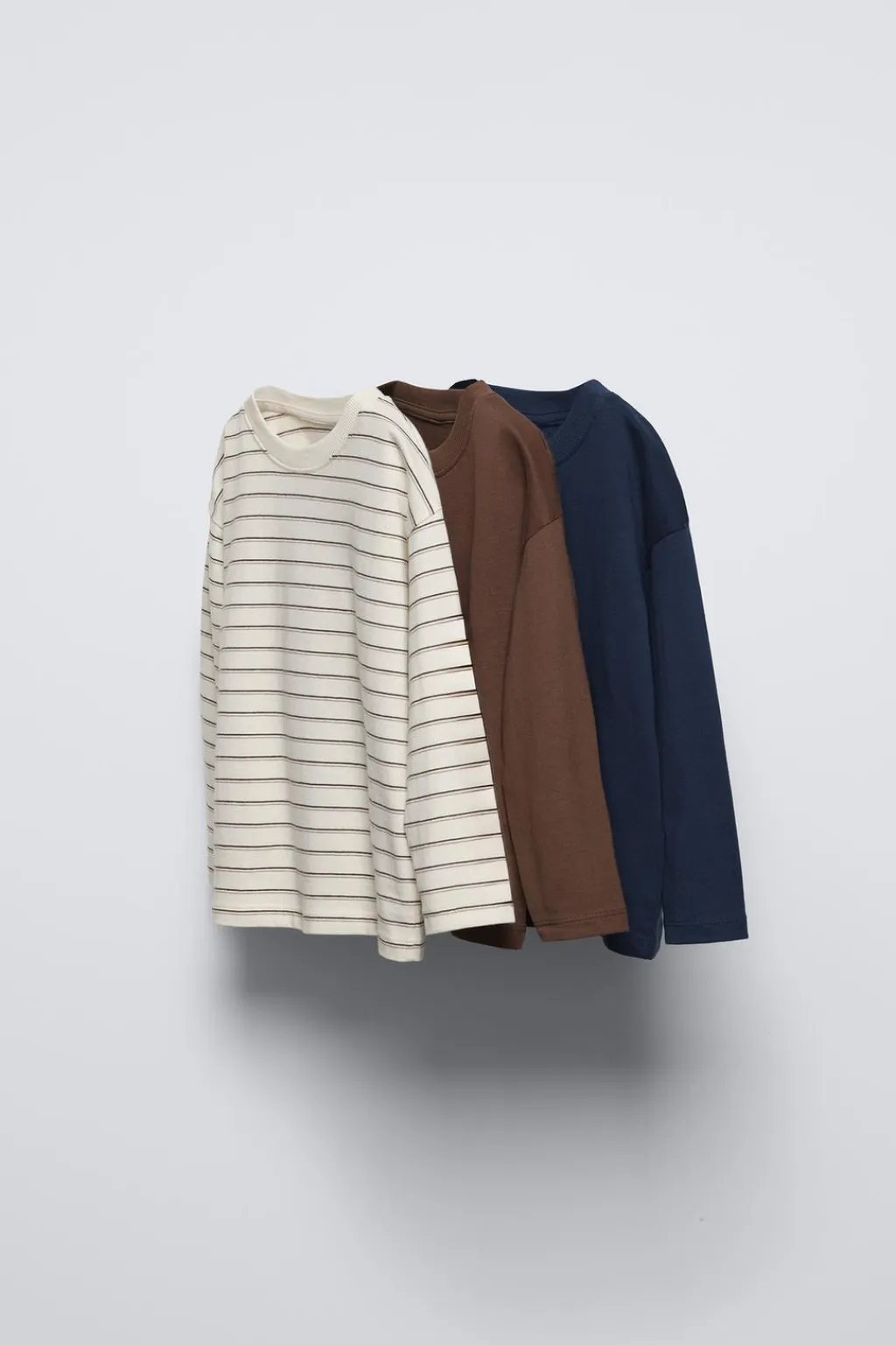 Pack de tres camisetas con cuello redondo y manga larga.