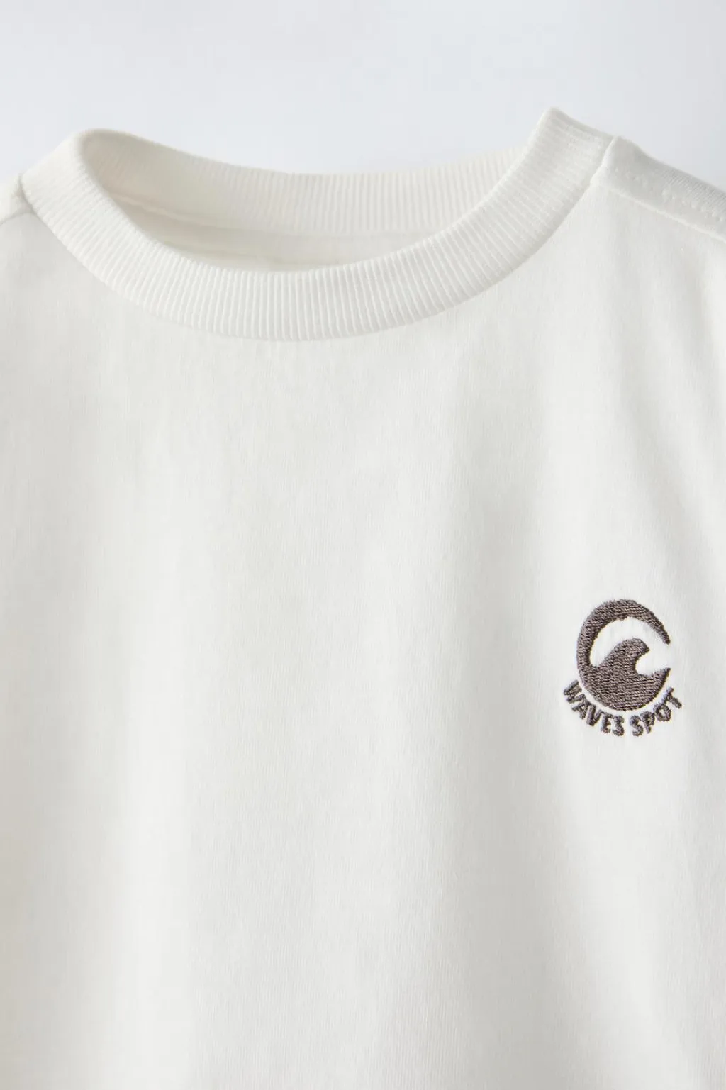 Camiseta con cuello redondo y manga corta. Detalle bordado en pechera.