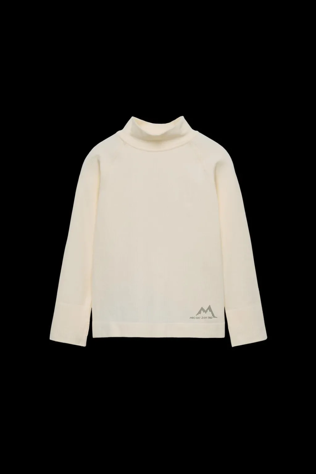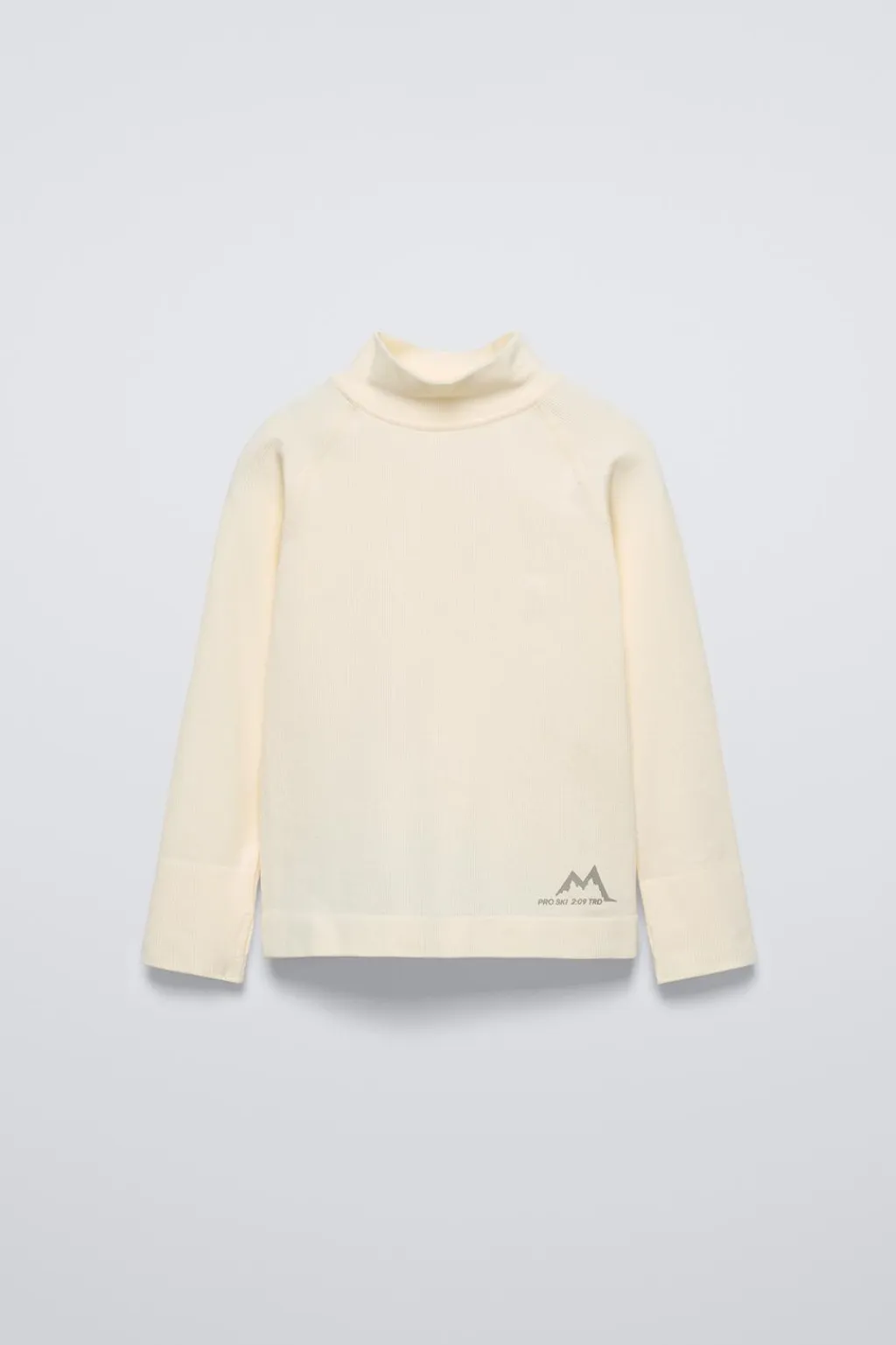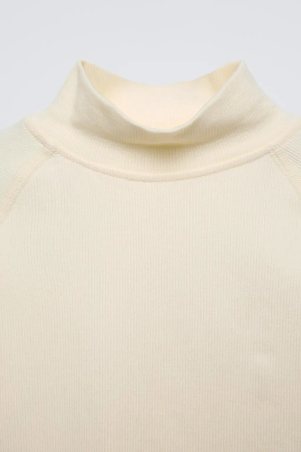 Camiseta rib con cuello subido y manga larga acabada en puño con abertura para pulgar. Detalle relieve en bajo color a contraste y aplique tira en espalda.