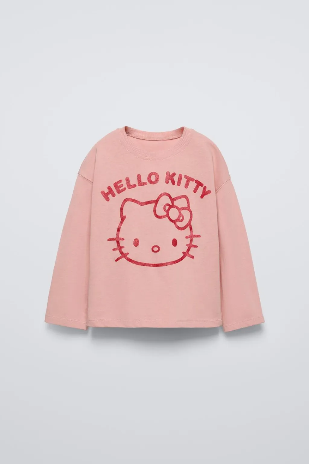 Camiseta con cuello redondo y manga larga. Estampado con brillo de HELLO KITTY©.