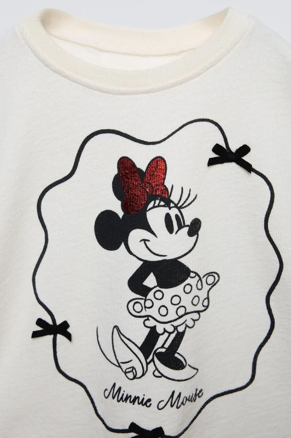 Camiseta con cuello redondo y manga larga. Estampado MINNIE MOUSE © DISNEY con detalle brillo y aplique lacitos.