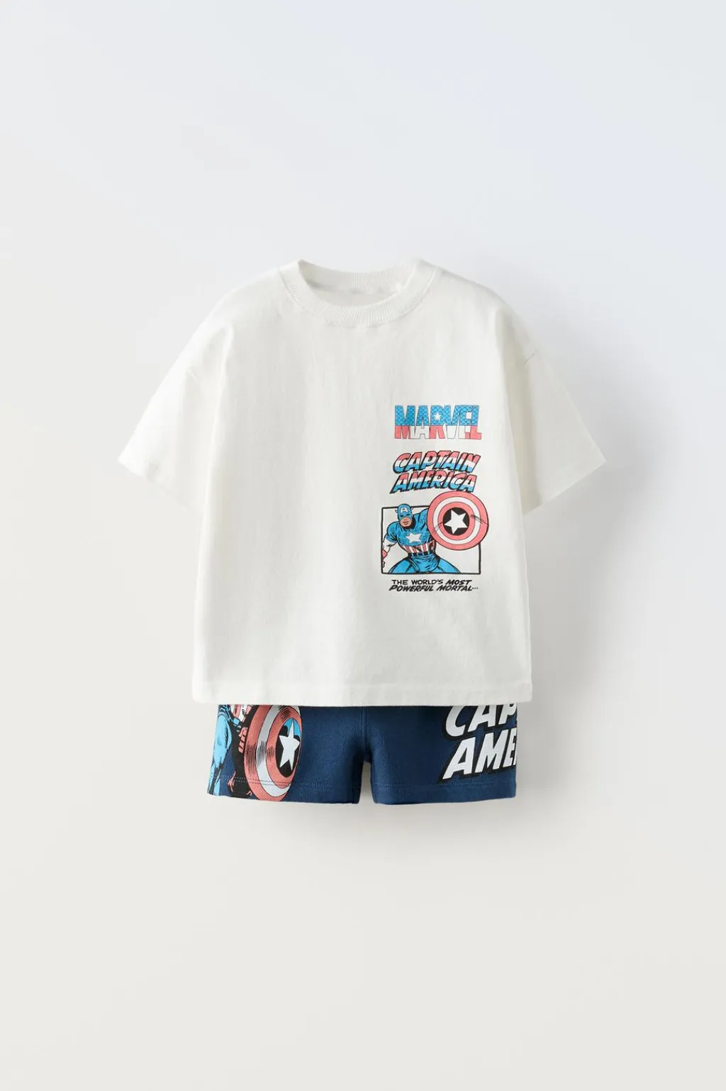 Conjunto de dos piezas. Camiseta con cuello redondo y manga corta. Estampado CAPITÁN AMÉRICA © MARVEL en delantero. Bermuda con cinturilla elástica y estampado CAPITÁN AMÉRICA © MARVEL.