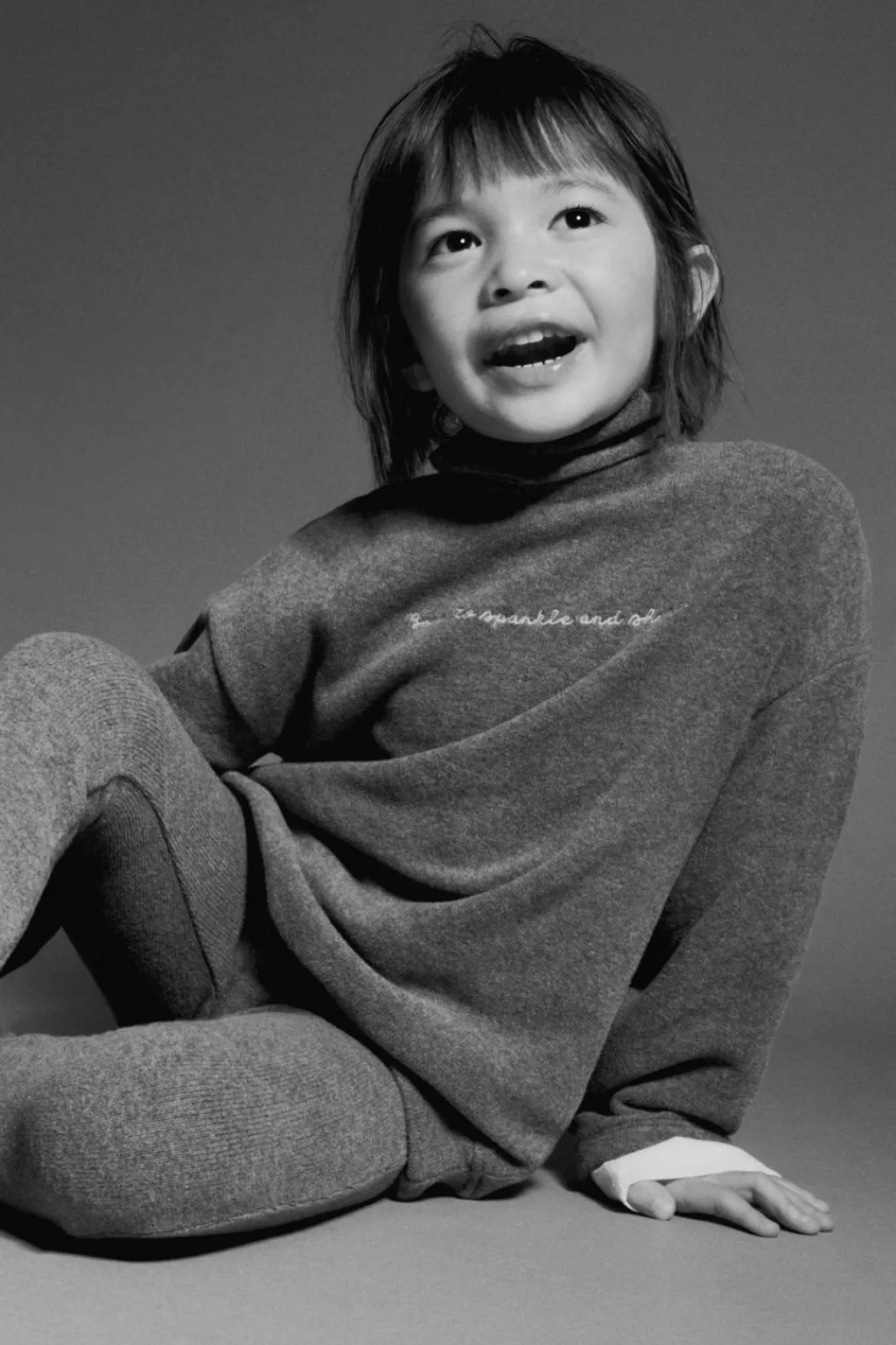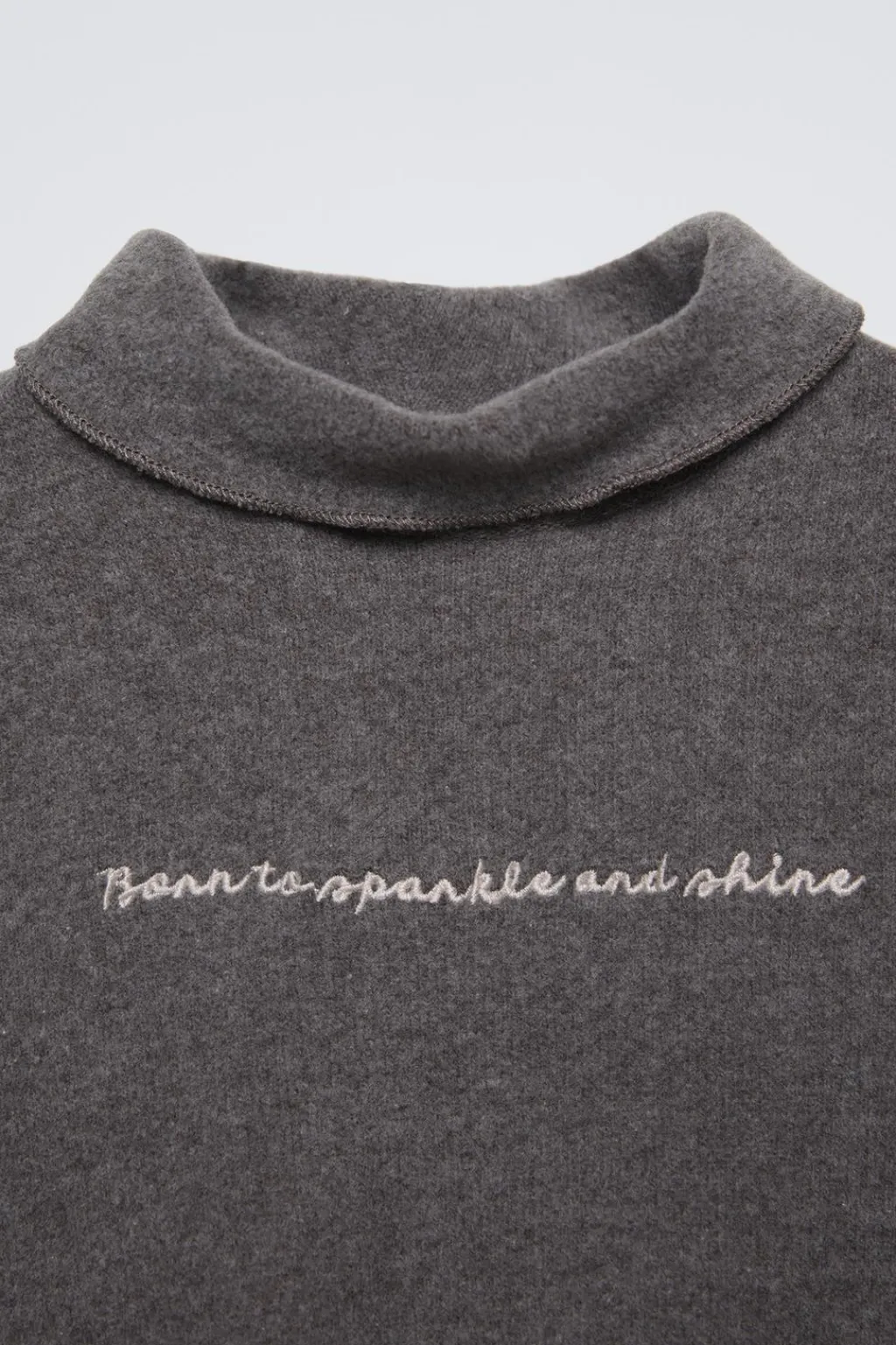 Camiseta con cuello vuelto y manga larga. Detalle bordado en pechera. Tejido cálido y suave.