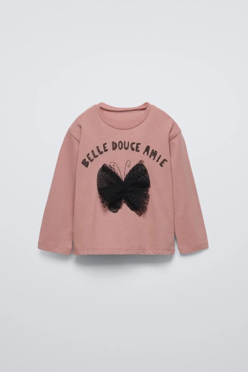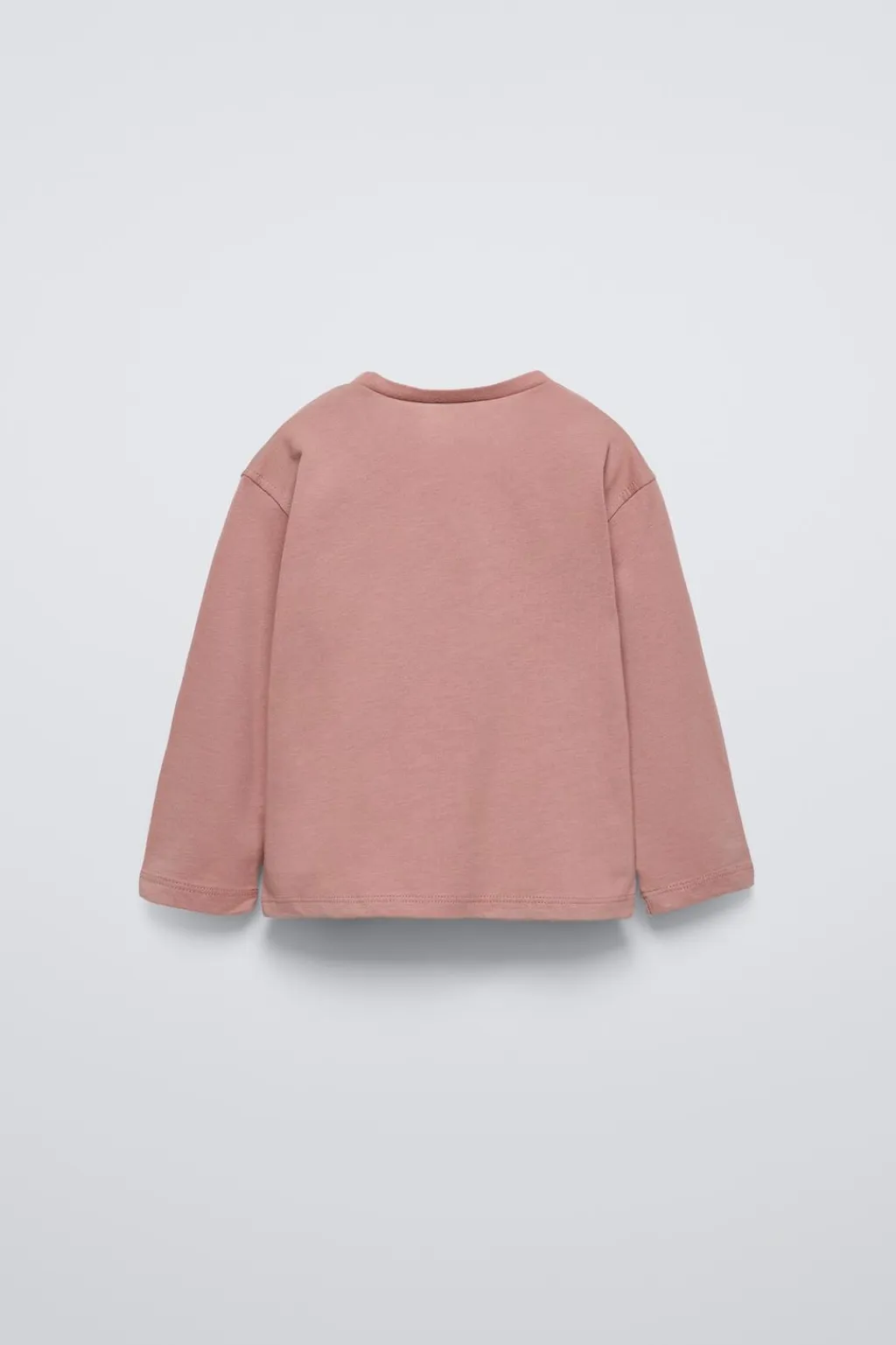 Camiseta con cuello redondo y manga larga. Estampado y aplique plumeti en delantero.