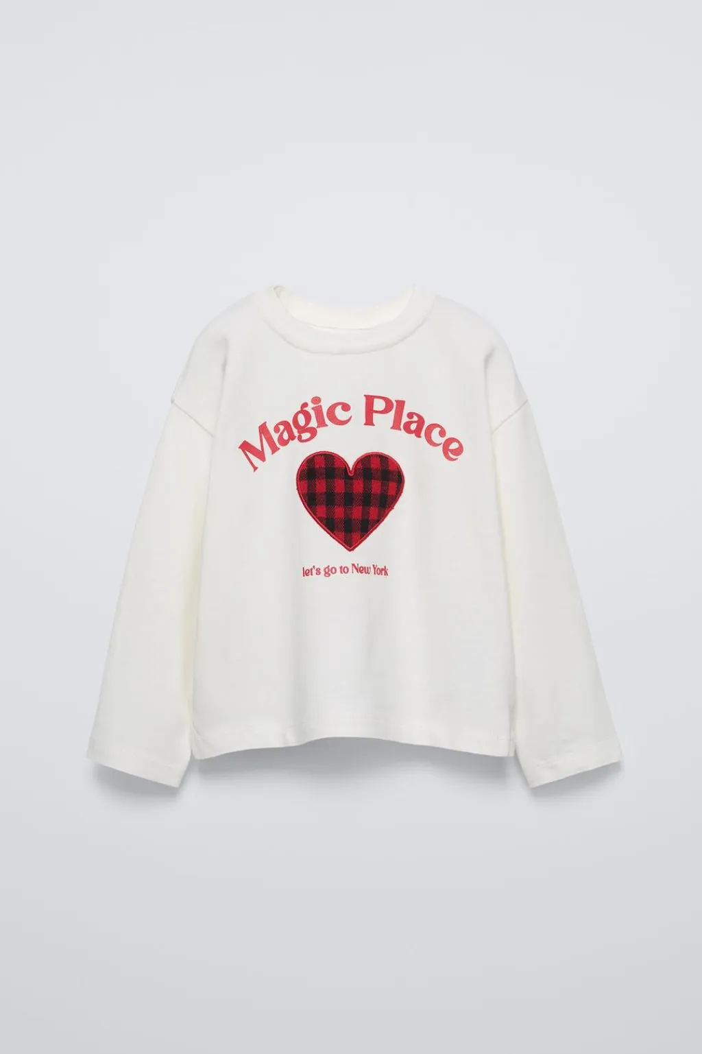 Camiseta con cuello redondo y manga larga. Estampado corazón cuadro vichi y texto en delantero.