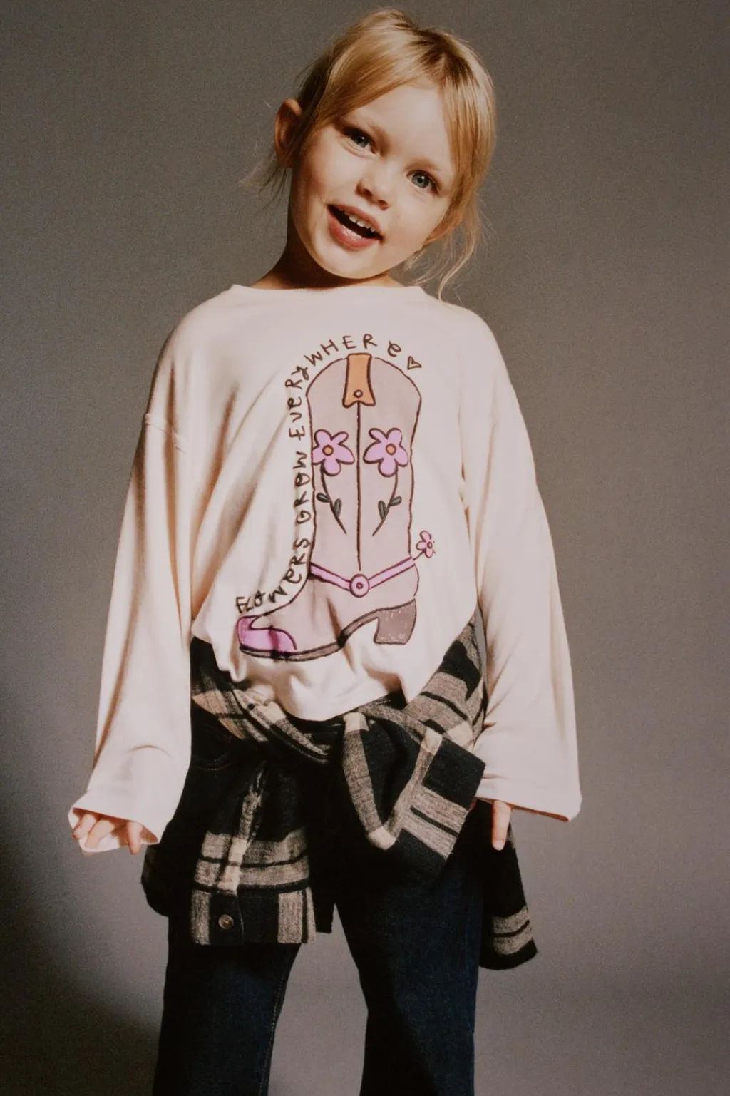 Camiseta con cuello redondo y manga larga. Estampado en delantero.
