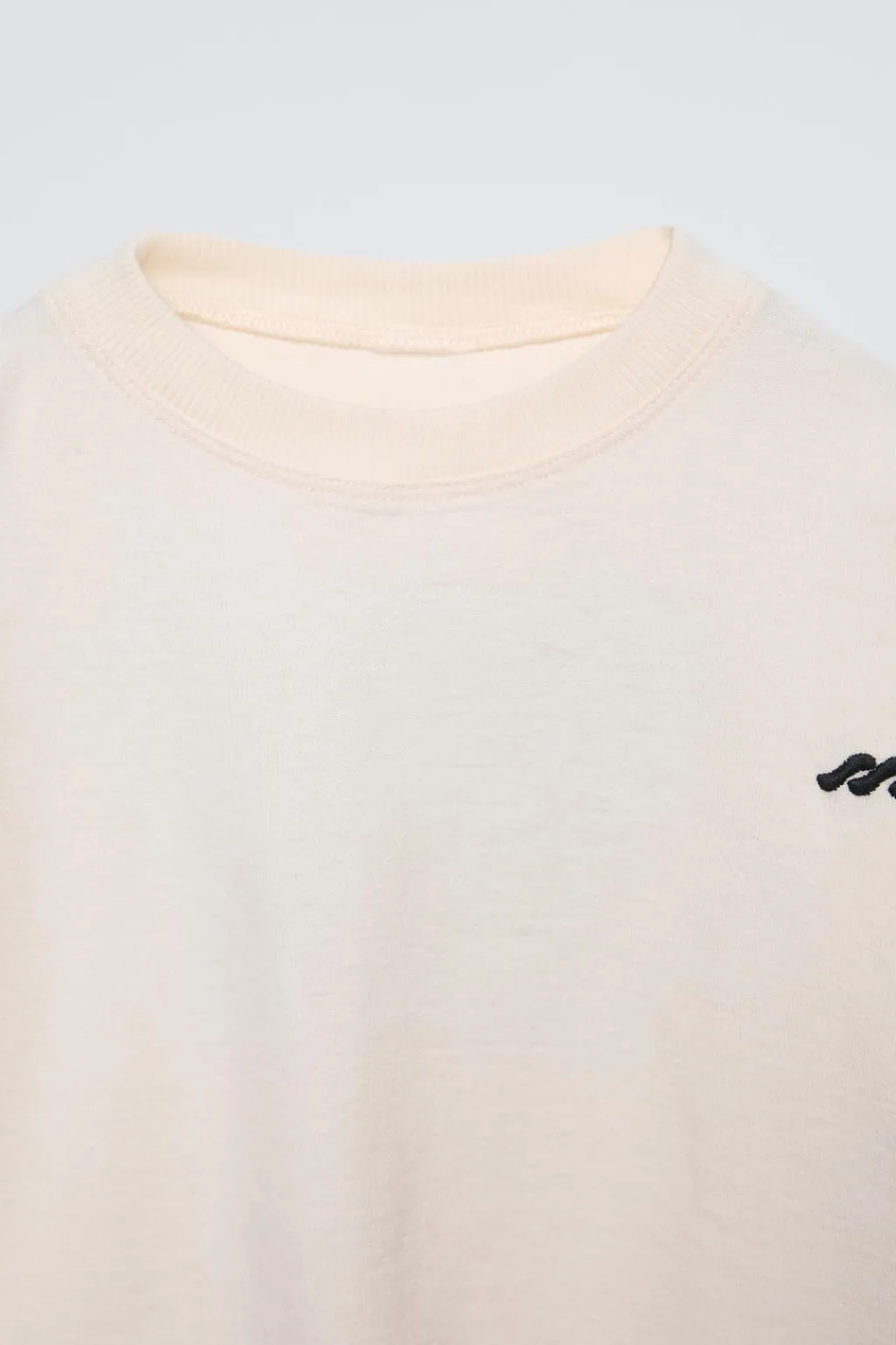 Camiseta con cuello redondo y manga larga acabada en puño. Detalle bordado logo en pechera y estampado texto en espalda.