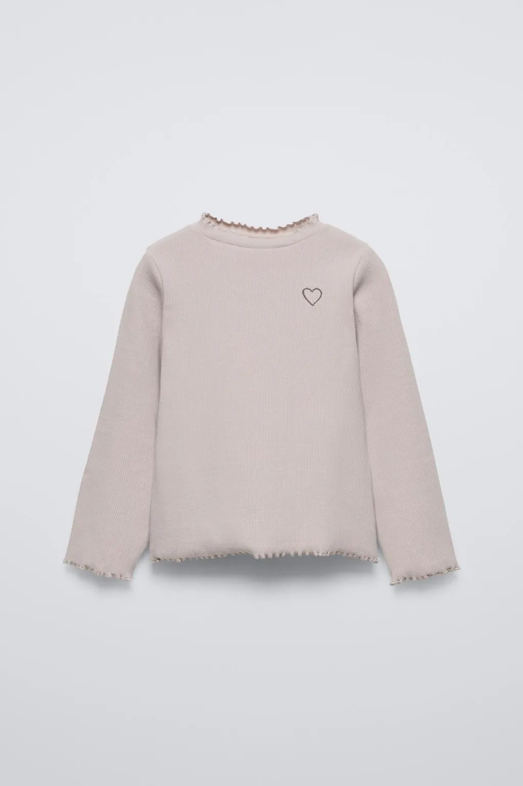 Camiseta rib con cuello perkins y manga larga. Detalle bordado en pechera. Acabados en rizo.