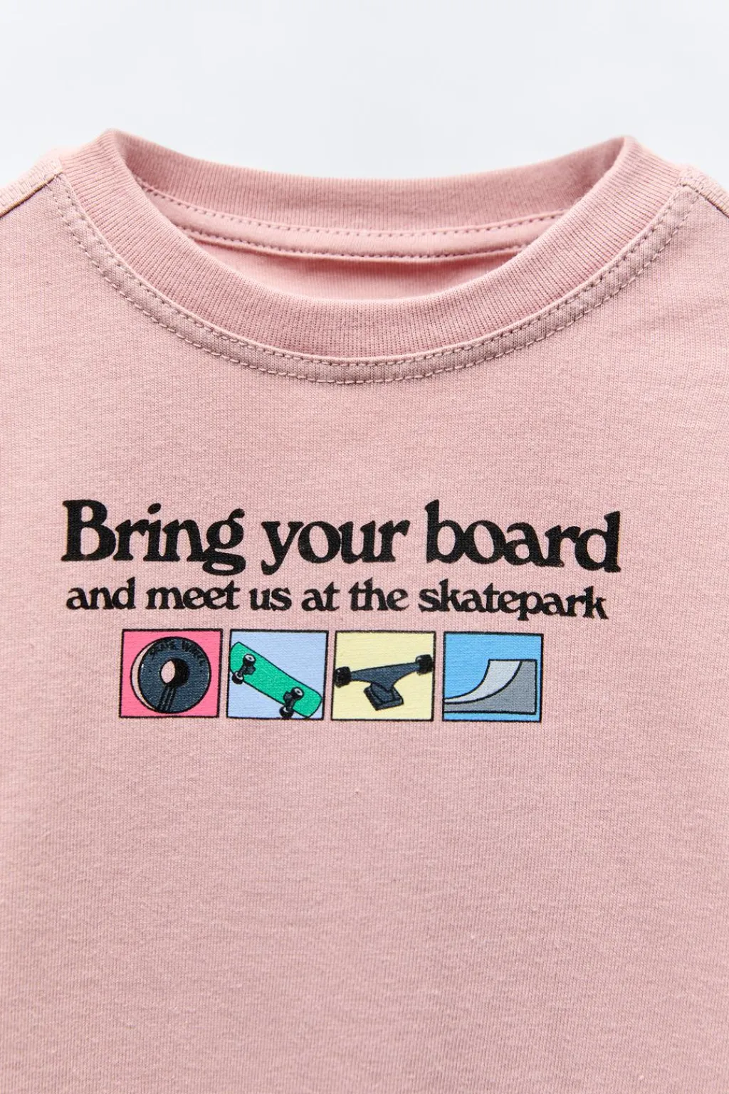 Camiseta con cuello redondo y manga larga. Estampado skate en delantero y espalda.