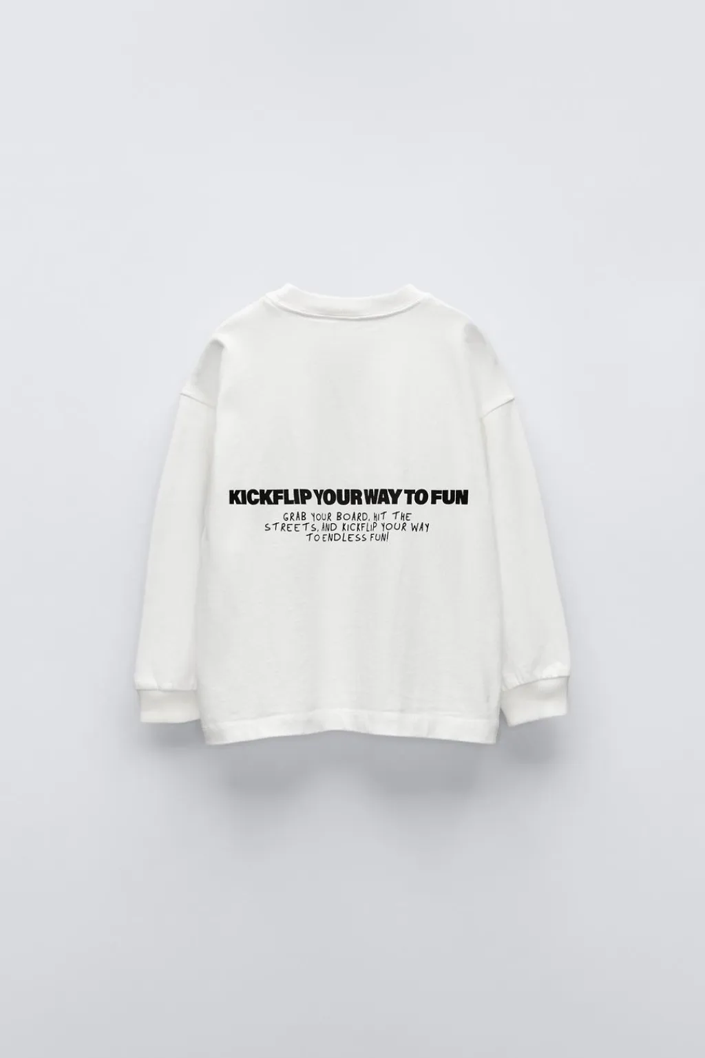 Camiseta con cuello redondo y manga larga acabada en puño. Estampado en delantero y espalda.