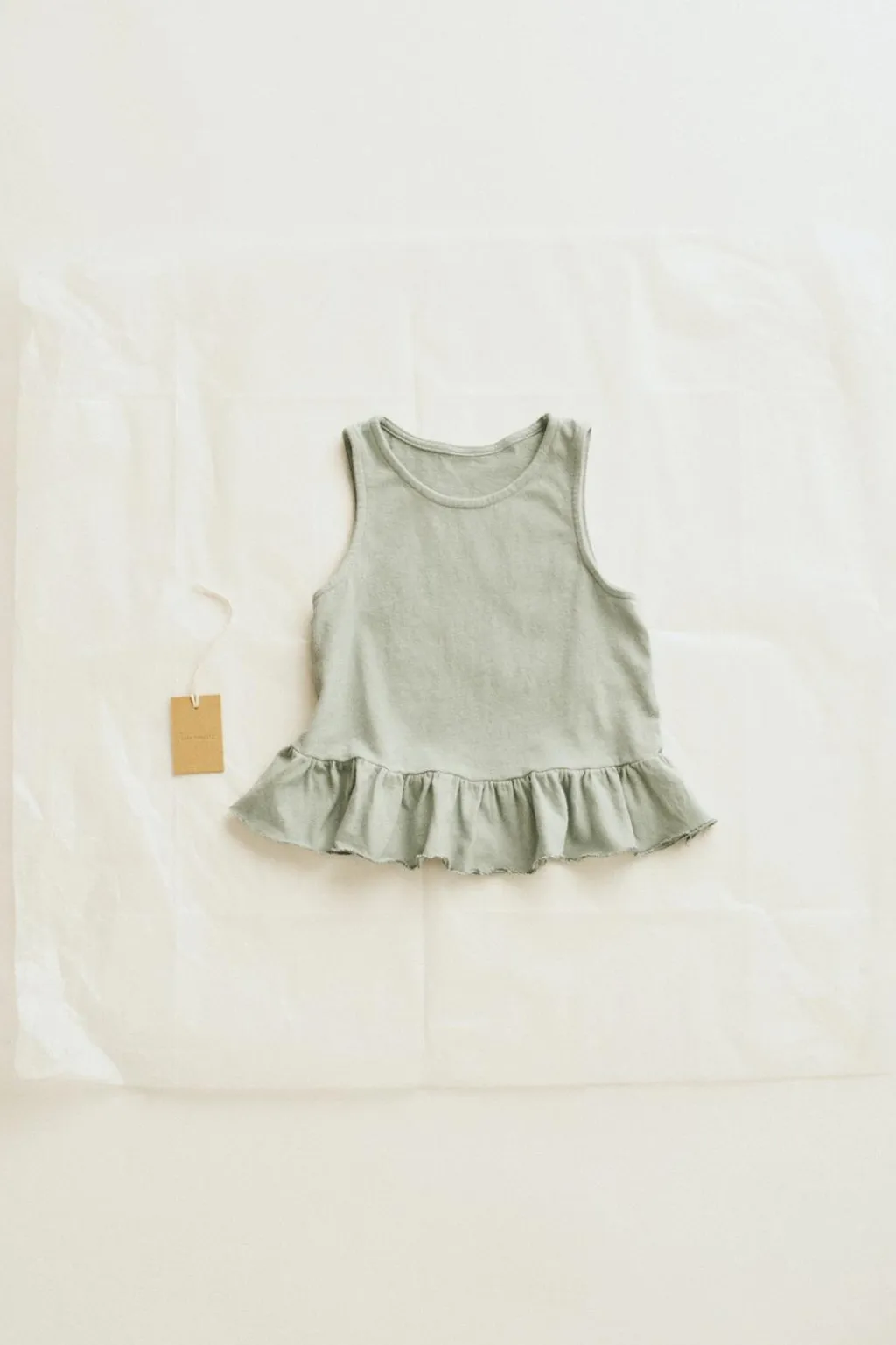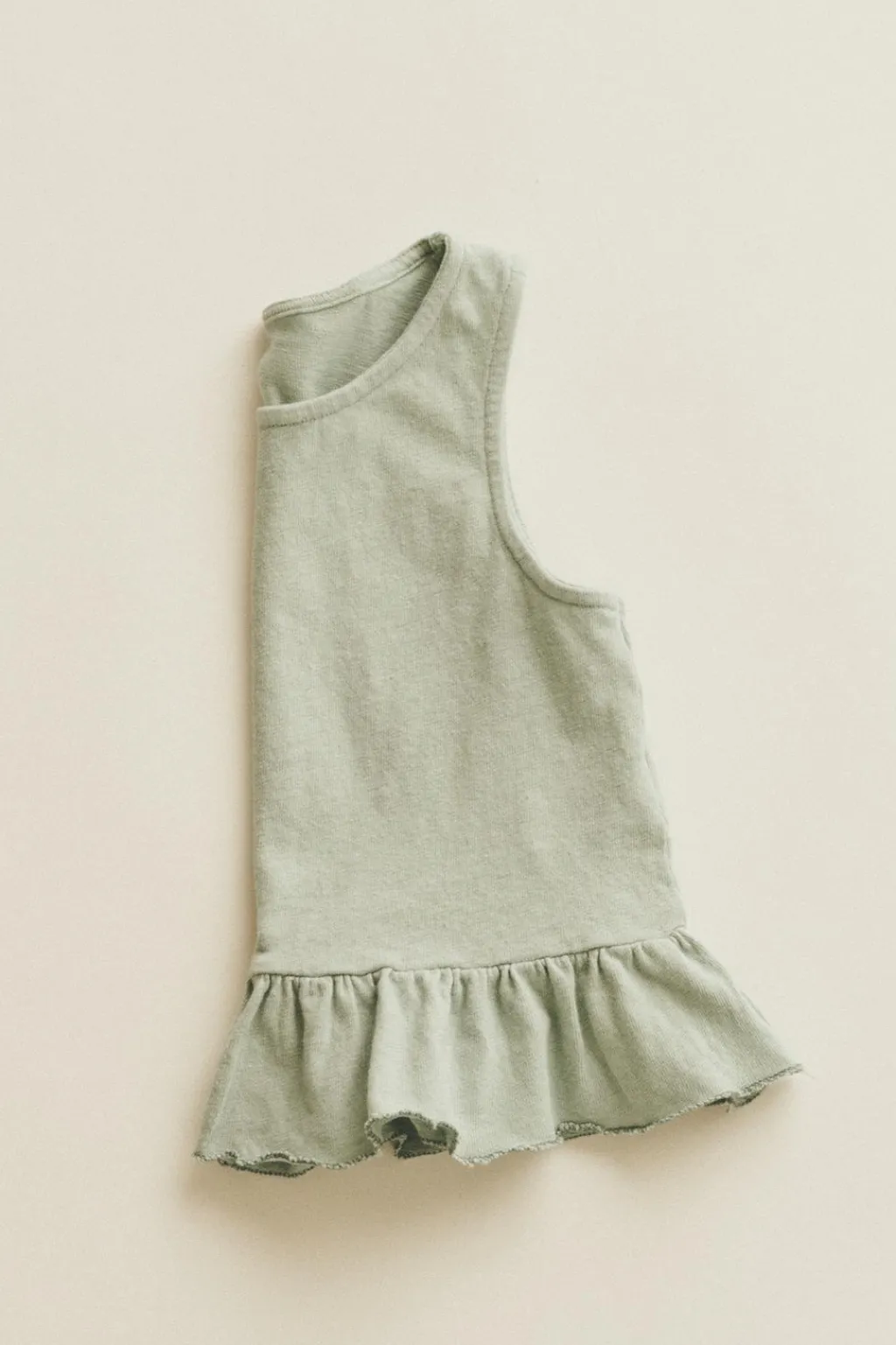 Top con manga sisa confeccionado en algodón y lino. Como detalle tiene un volante en el bajo.