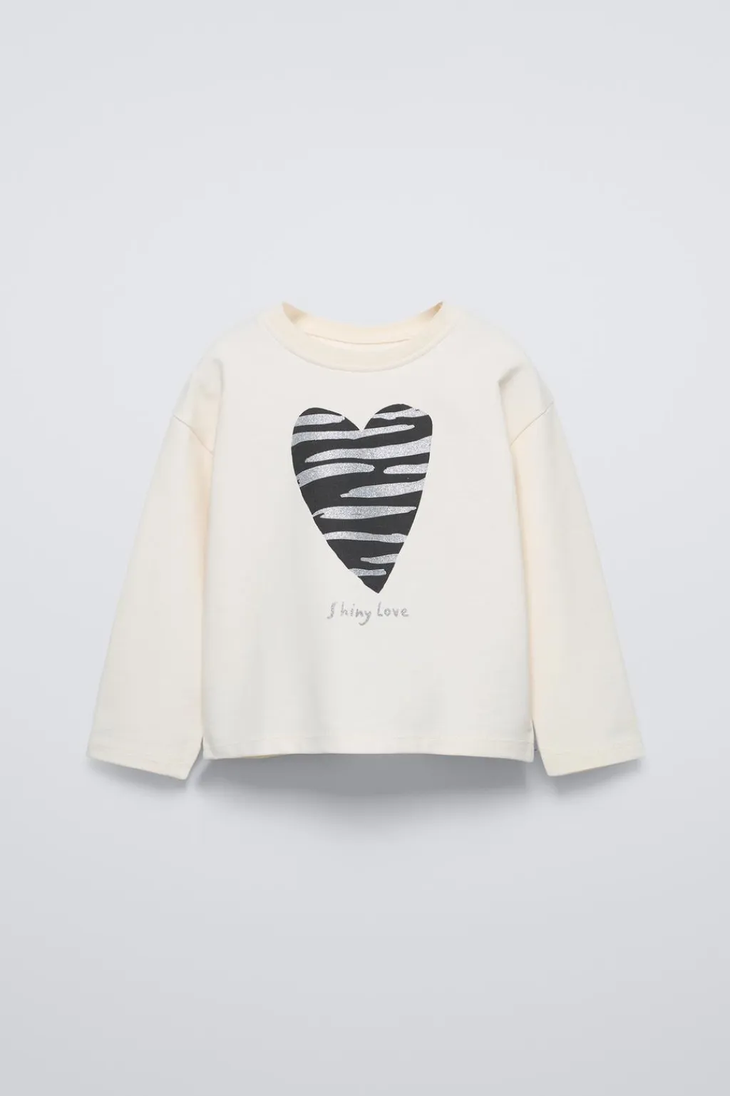 Camiseta con cuello redondo y manga larga. Estampado en delantero con detalle brillo.