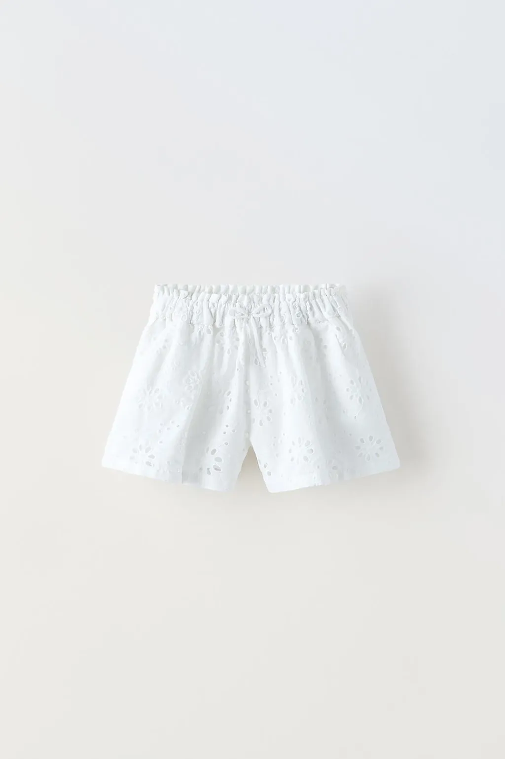 Bermuda con cinturilla elástica y aplique cordón frontal. Detalle bordado flores all over.