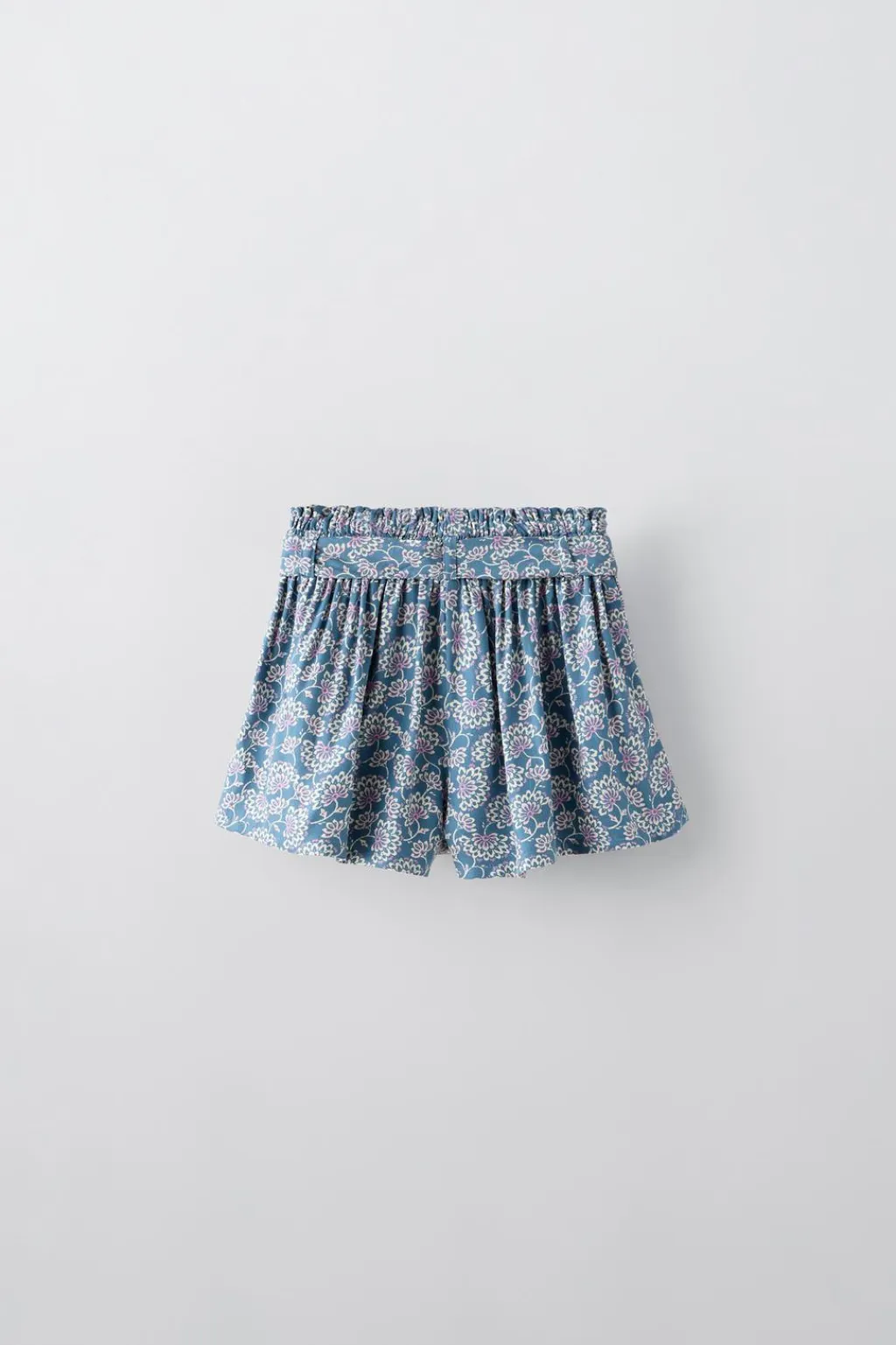 Falda tipo bermuda con cinturilla elástica y aplique cinturón ajustable. Estampado flores.