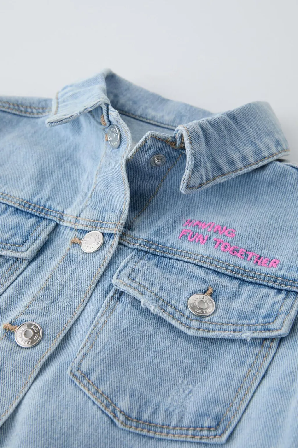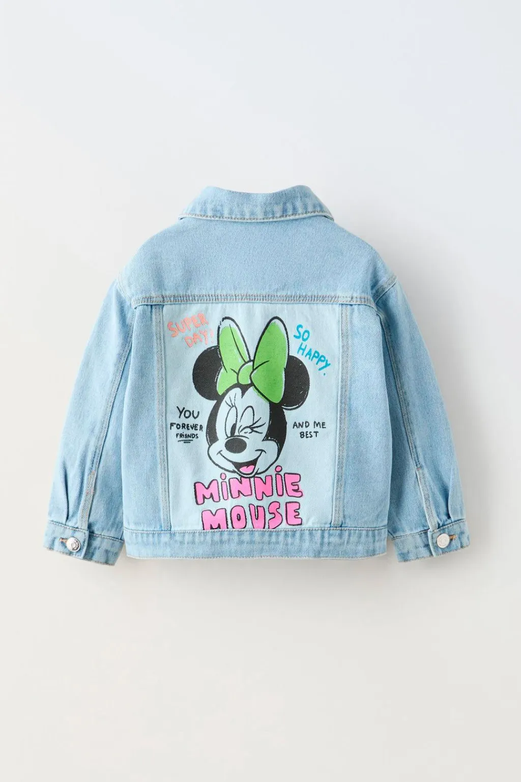 Cazadora denim con cuello camisero y manga larga. Cierre botonadura frontal. Bolsillos de tipo plastrón con tapeta y cierre botón en pechera. Estampado MINNIE MOUSE © DISNEY en espalda y detalle bordado en pechera.