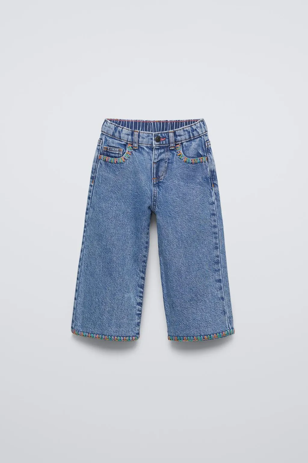 Jeans con cinturilla interior ajustable y cierre botón tipo presión. Cierre con cremallera a partir de la talla 4. Bolsillos delanteros y de tipo plastrón en espalda. Acabados con bordados de colores.