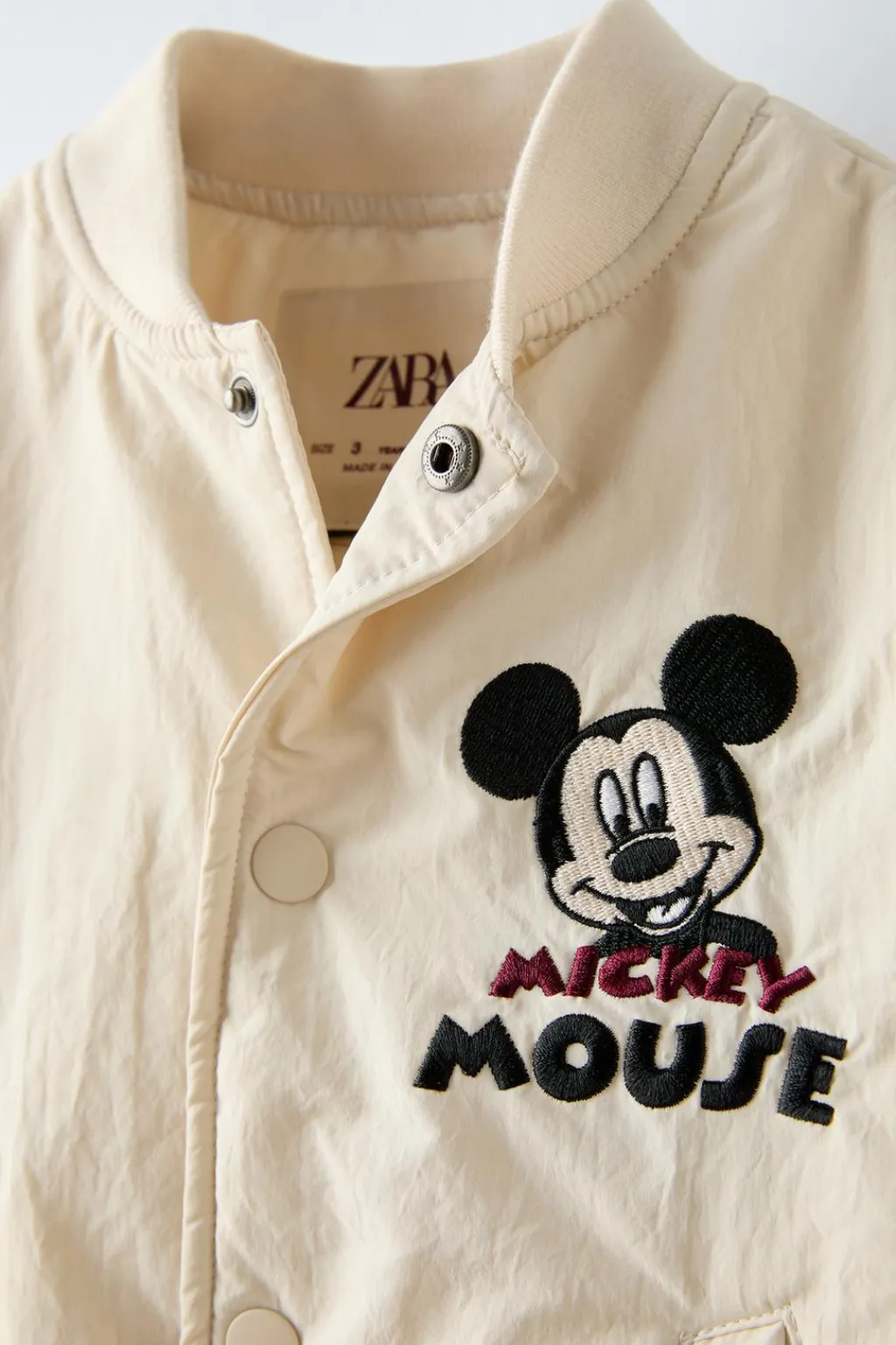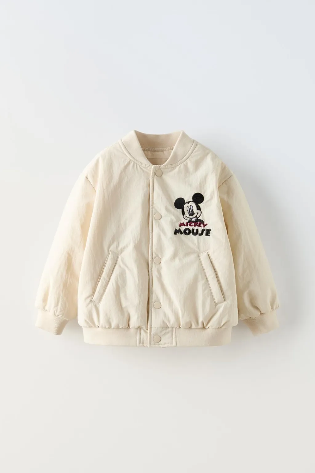 Bomber con cuello subido y manga larga. Motivo MICKEY MOUSE © DISNEY bordado en pechera y espalda. Cierre frontal con botones tipo snap. Bolsillos en delantero. Acabados en rib.