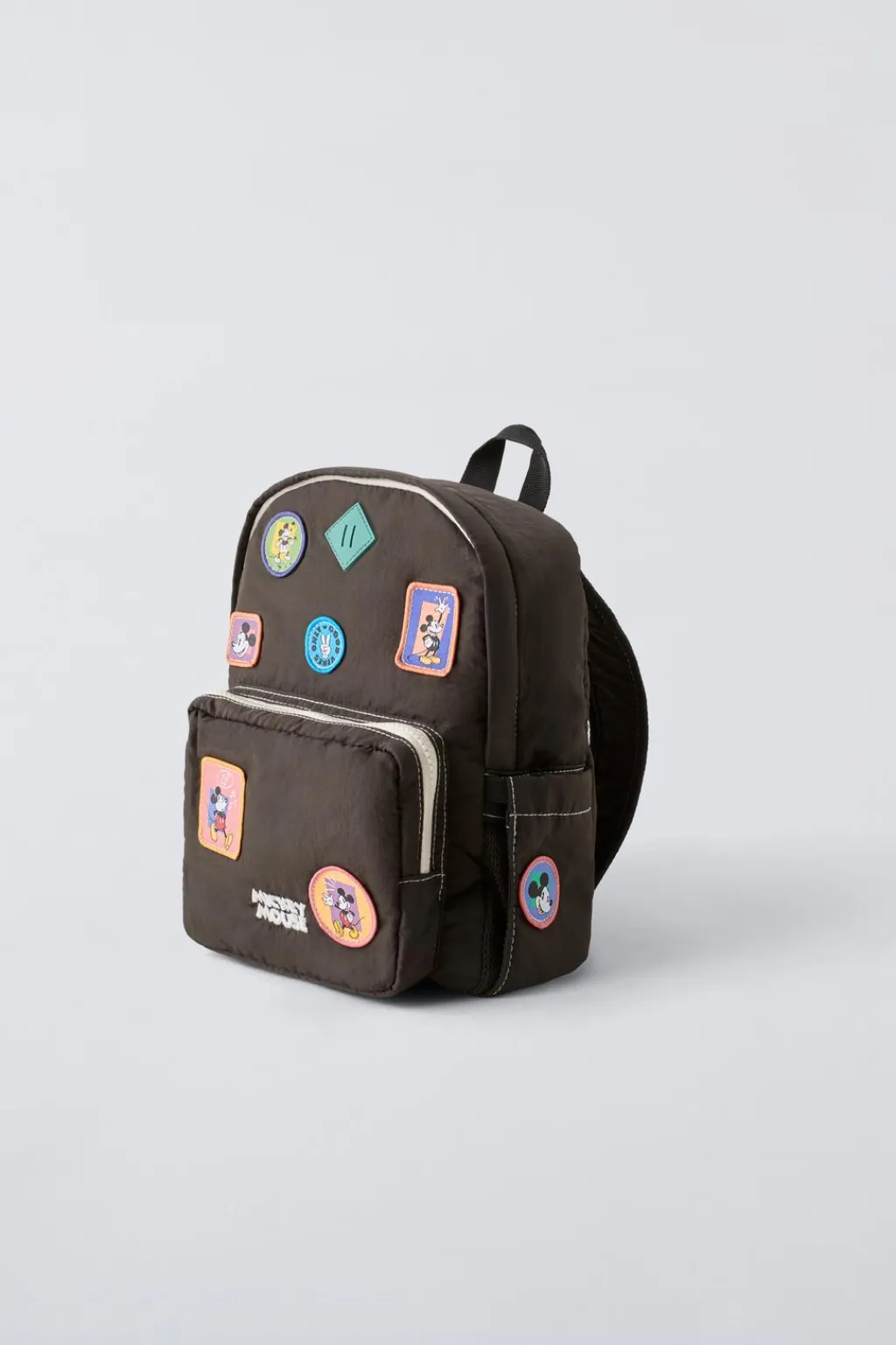 Mochila parches MICKEY MOUSE © DISNEY. Compartimento principal con cierre mediante cremallera. Cuenta con un bolsillo frontal con cierre mediante cremallera y dos bolsillos laterales sin cierre. Doble asa de mano y doble asa de hombro ajustable. Correa ajustable al pecho con cierre deportivo.