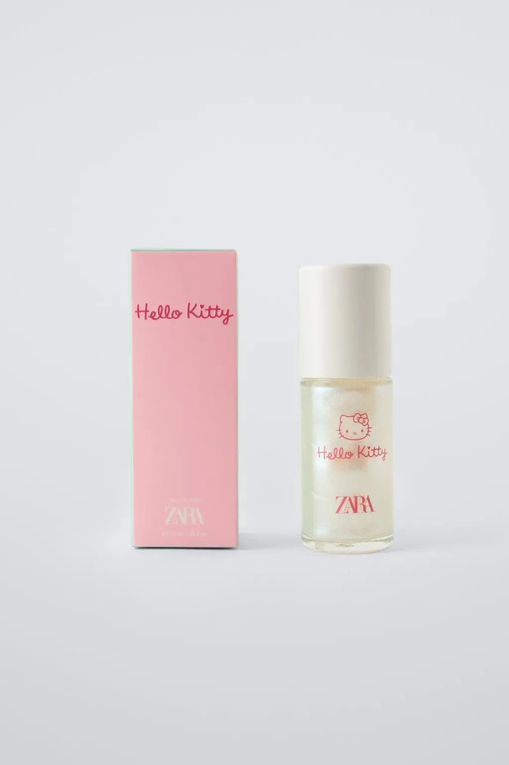 Roll-on corporal de purpurina con la fragancia del perfume Hello Kitty de Zara. Un body glitter chic y coqueto inspirado en la dulzura, inocencia y amabilidad del personaje.