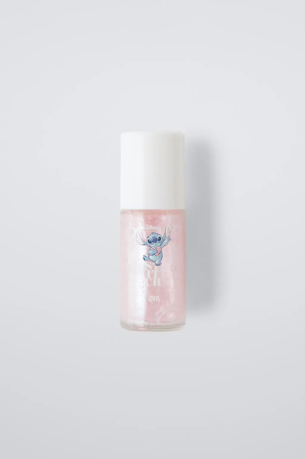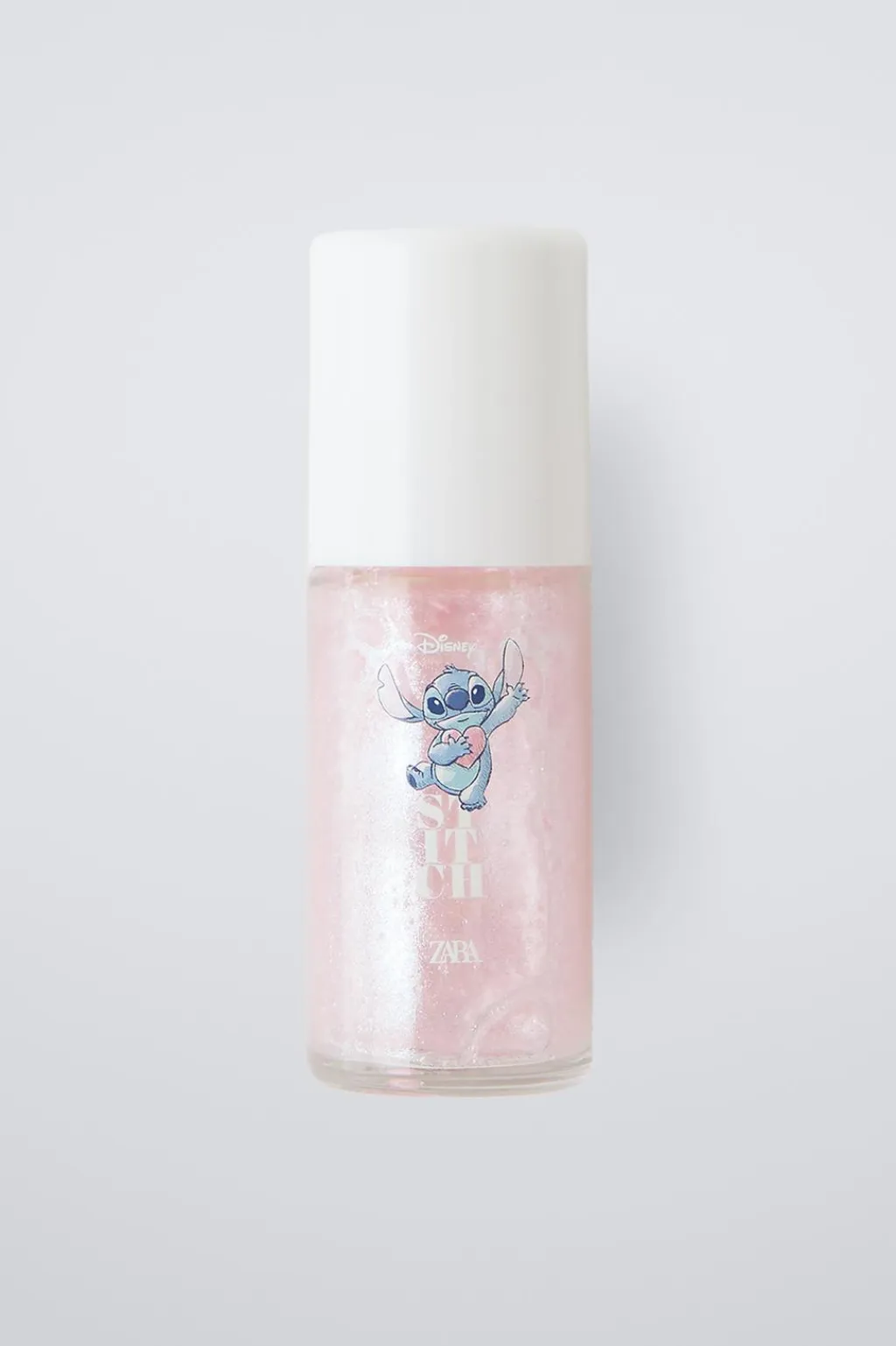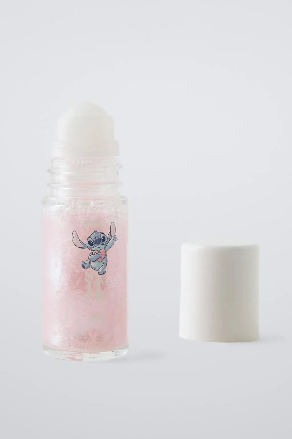 Roll-on corporal de purpurina rosacon la fragancia del perfume Stitch de Zara. Un body glitter inspirado en la estética tropical lleno de magia, aventuras y diversión.
