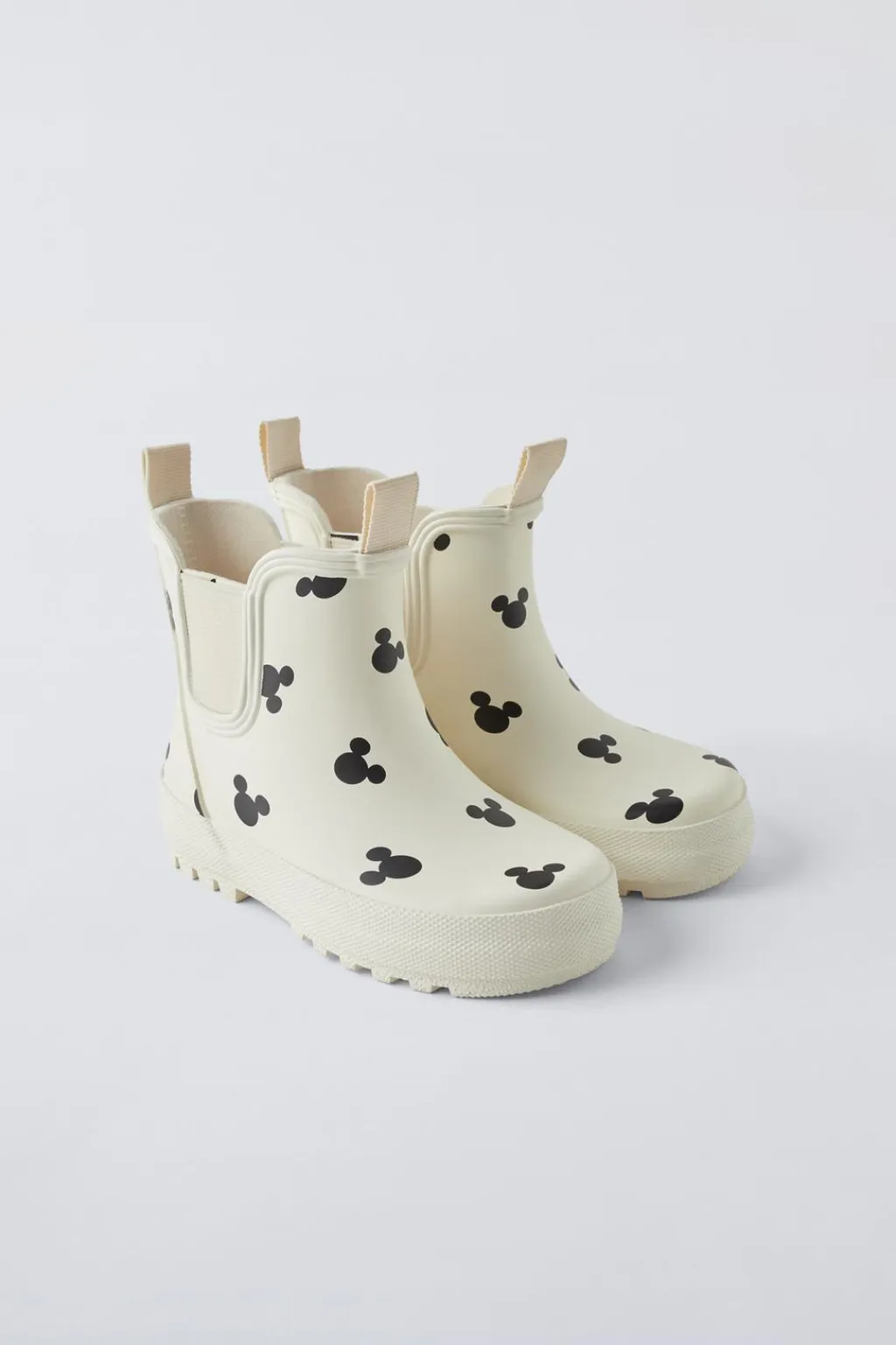 Bota de agua engomada MICKEY MOUSE © DISNEY. Cuenta con dos elásticos en los laterales para un mejor calce. Tirador delantero y trasero en contraste de color. Plantilla flexible. Suela de goma.