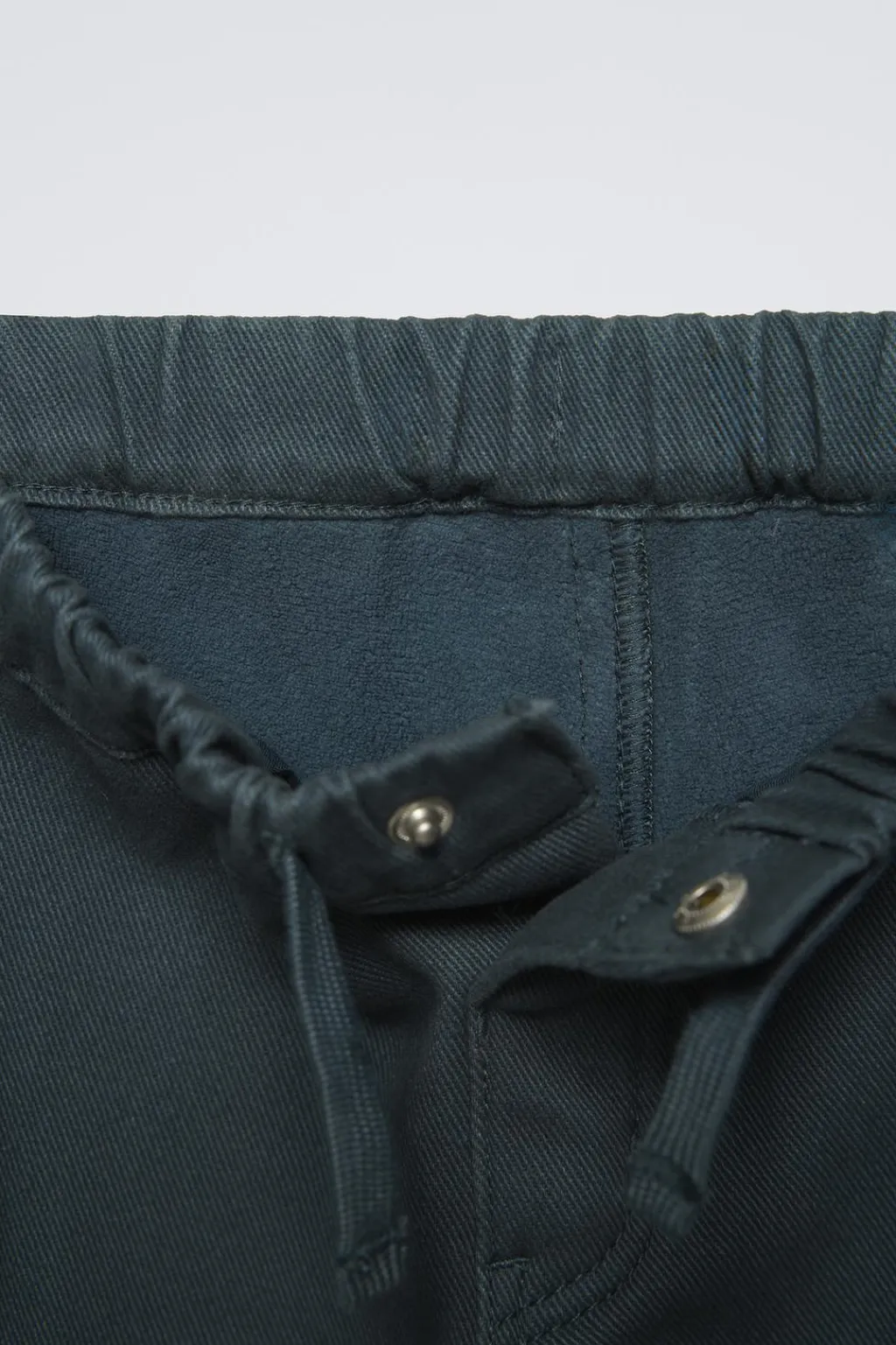 Pantalón con cinturilla elástica, cierre botón frontal y cordones ajustables frontal. Bolsillos delanteros y de tipo palstrón en laterales. Bajo acabado en puño. Tejido interior forrado.
