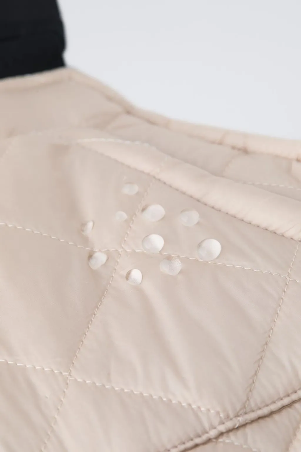 Peto con tejido especial repelente al agua. Cuello recto con tirantes elásticos y cierre frontal de hebilla. Bolsillo tipo canguro en pechera con forro interior polar. Bajo acabado en goma. Forro interior en tejido polar.