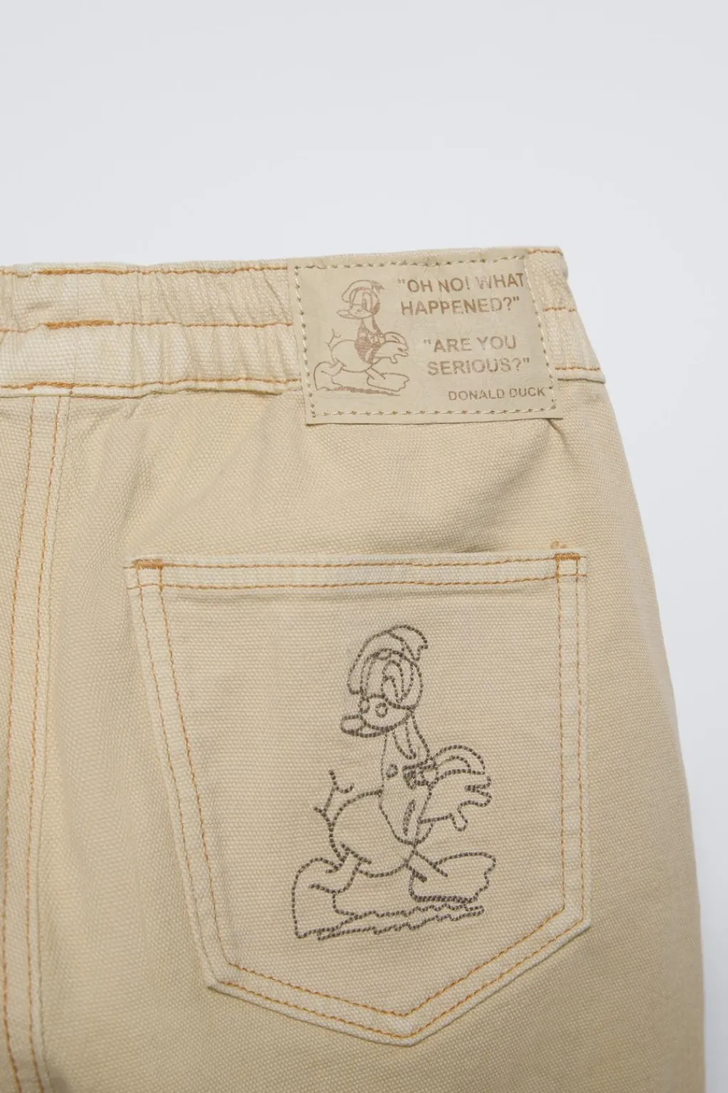 Pantalón con cinturilla elástica. Bolsillos delanteros y de tipo plastrón en espalda con bordado PATO DONALD ® DISNEY. Detalle pespuntes color a contraste.
