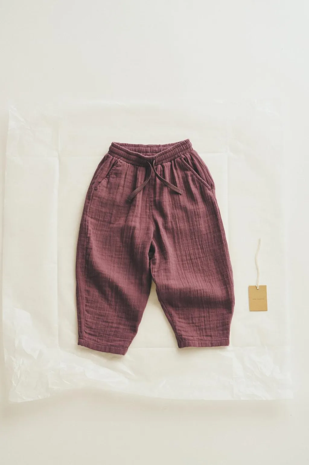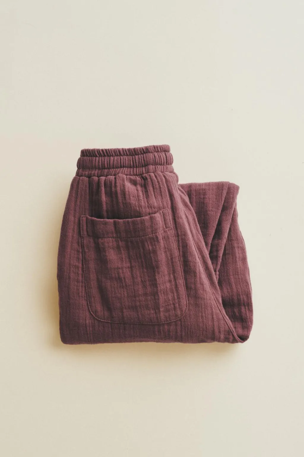 Pantalón balloon fit confeccionado en un tejido bambula de algodón. La cinturilla elástica y los cordones ajustables aportan comodidad y sujeción.