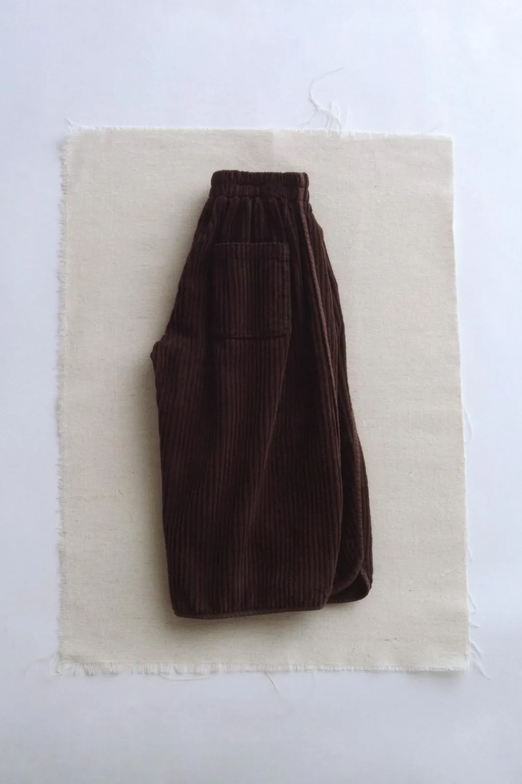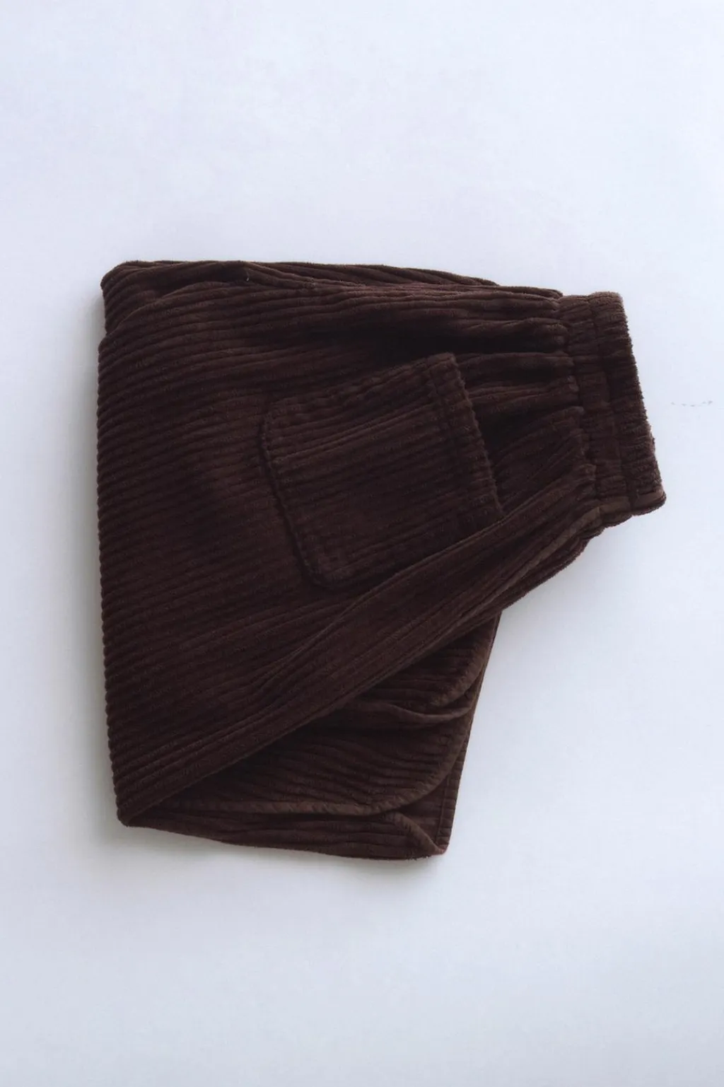 Pantalón de pana gruesa confeccionado en un tejido de algodón. La cinturilla elástica le aporta comodidad a la prenda. Como detalle tiene una abertura lateral en el bajo.
