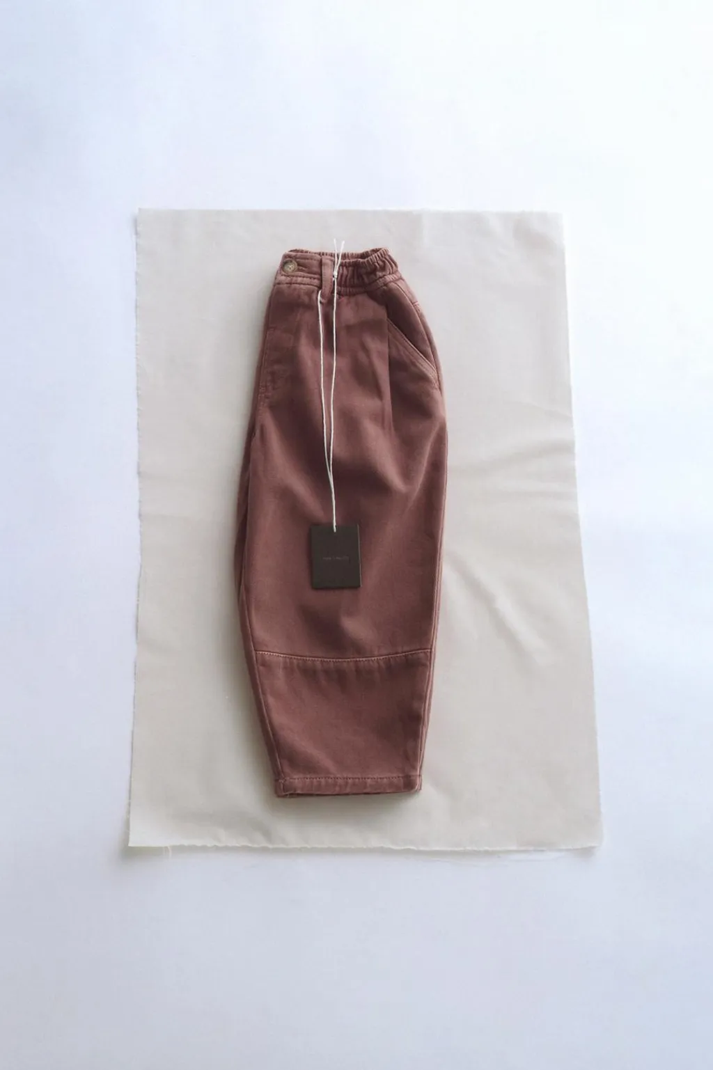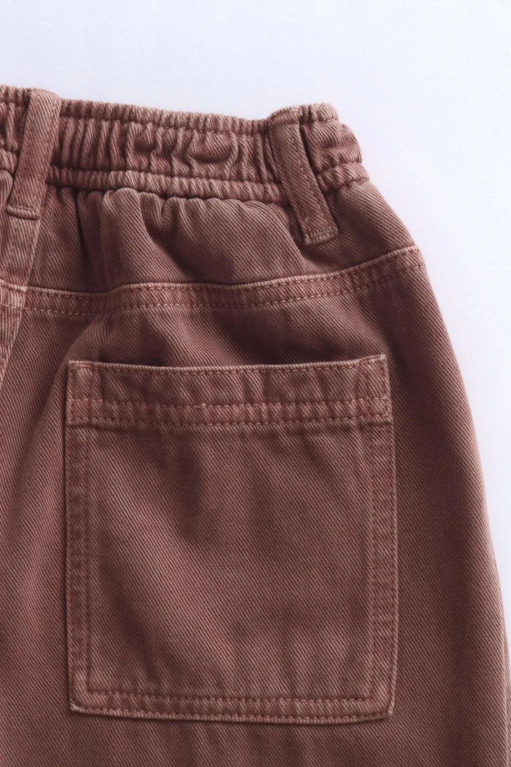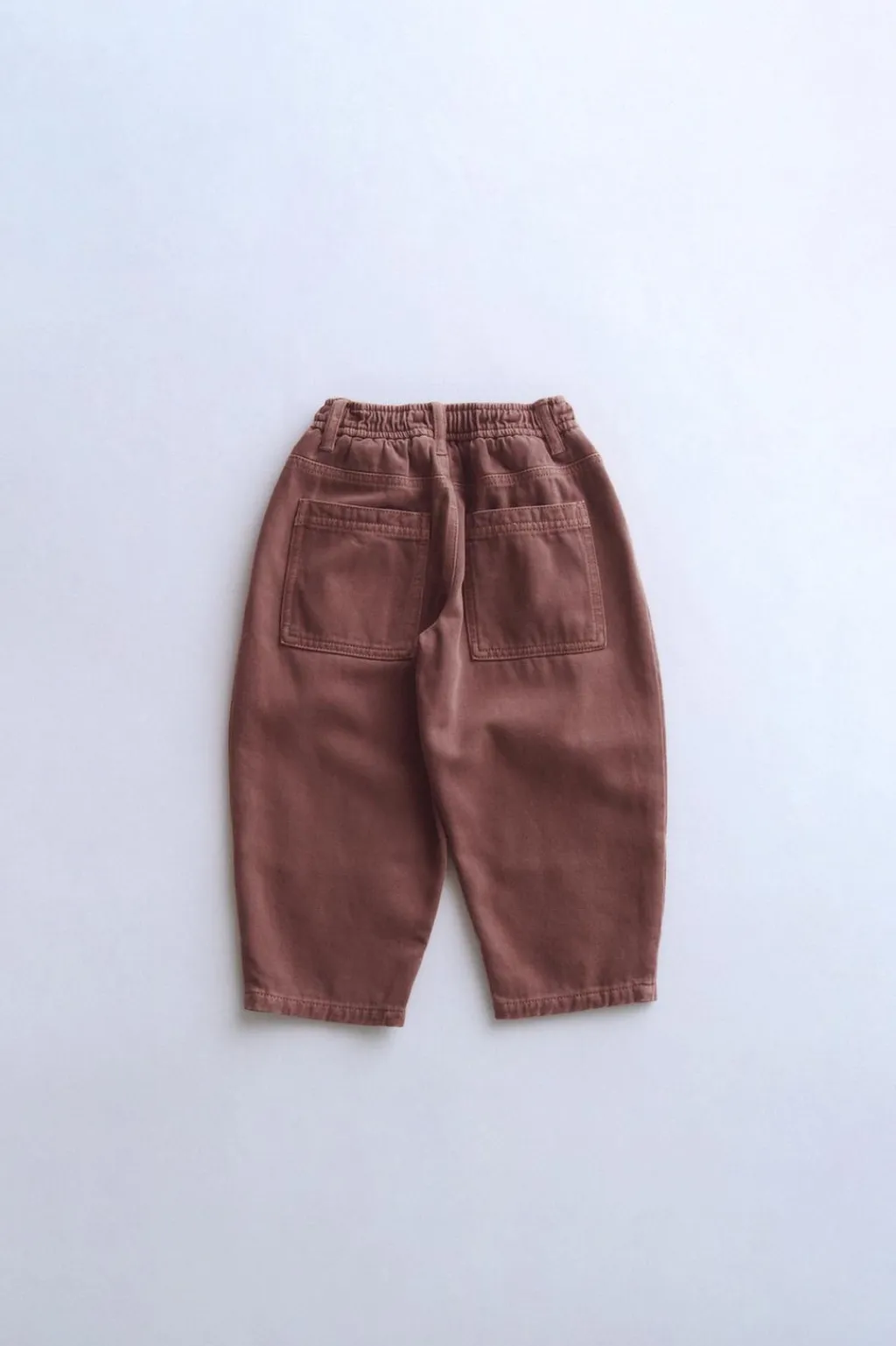 Pantalón de sarga con fit balloon confeccionado en algodón y lana. La cinturilla elástica proporciona comodidad. Como detalle tiene un corte en el delantero.