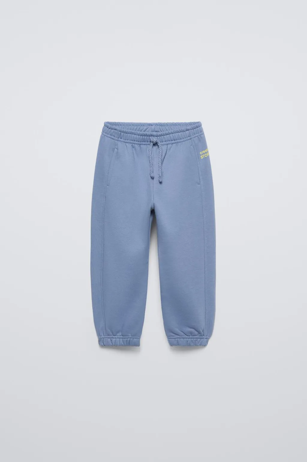 Pantalón con cinturilla elástica y aplique cordón frontal. Bolsillos en delantero. Estampado texto en lateral.