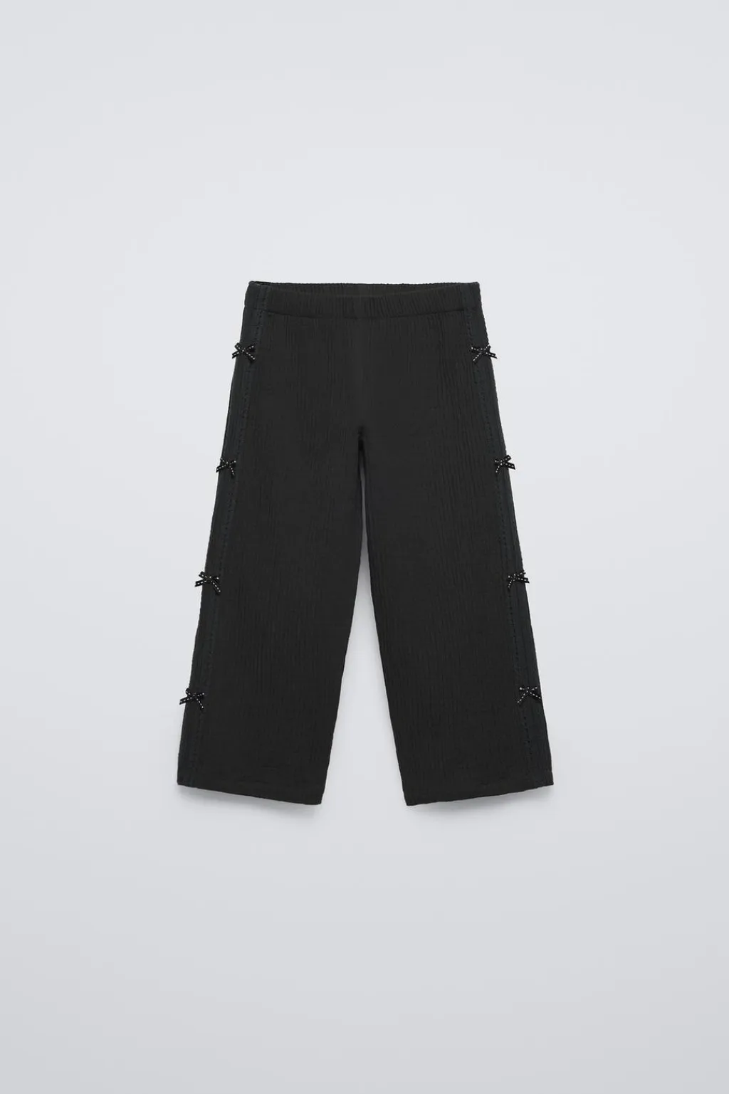 Pantalón con cinturilla elástica. Apliques lazos en laterales.