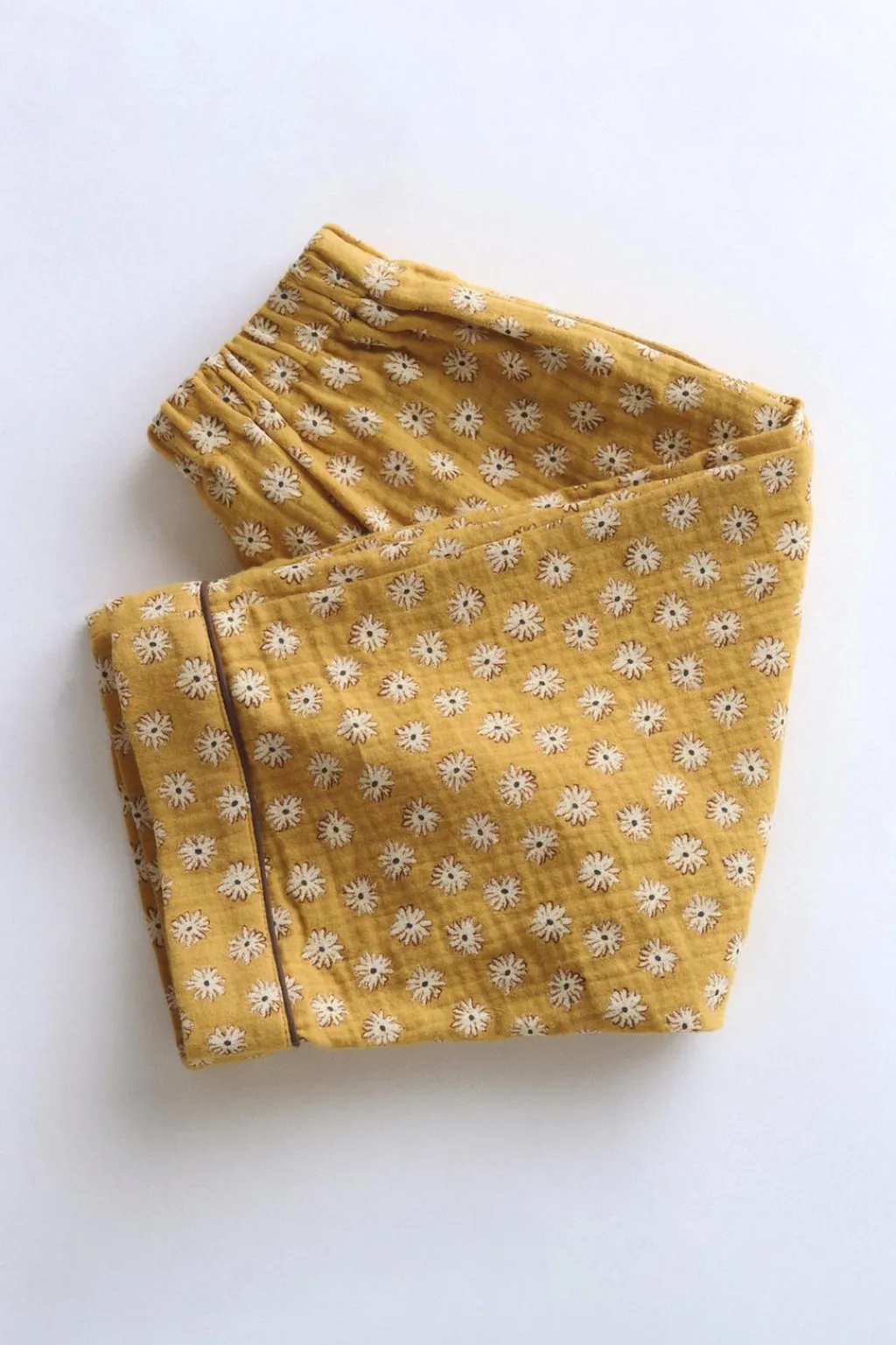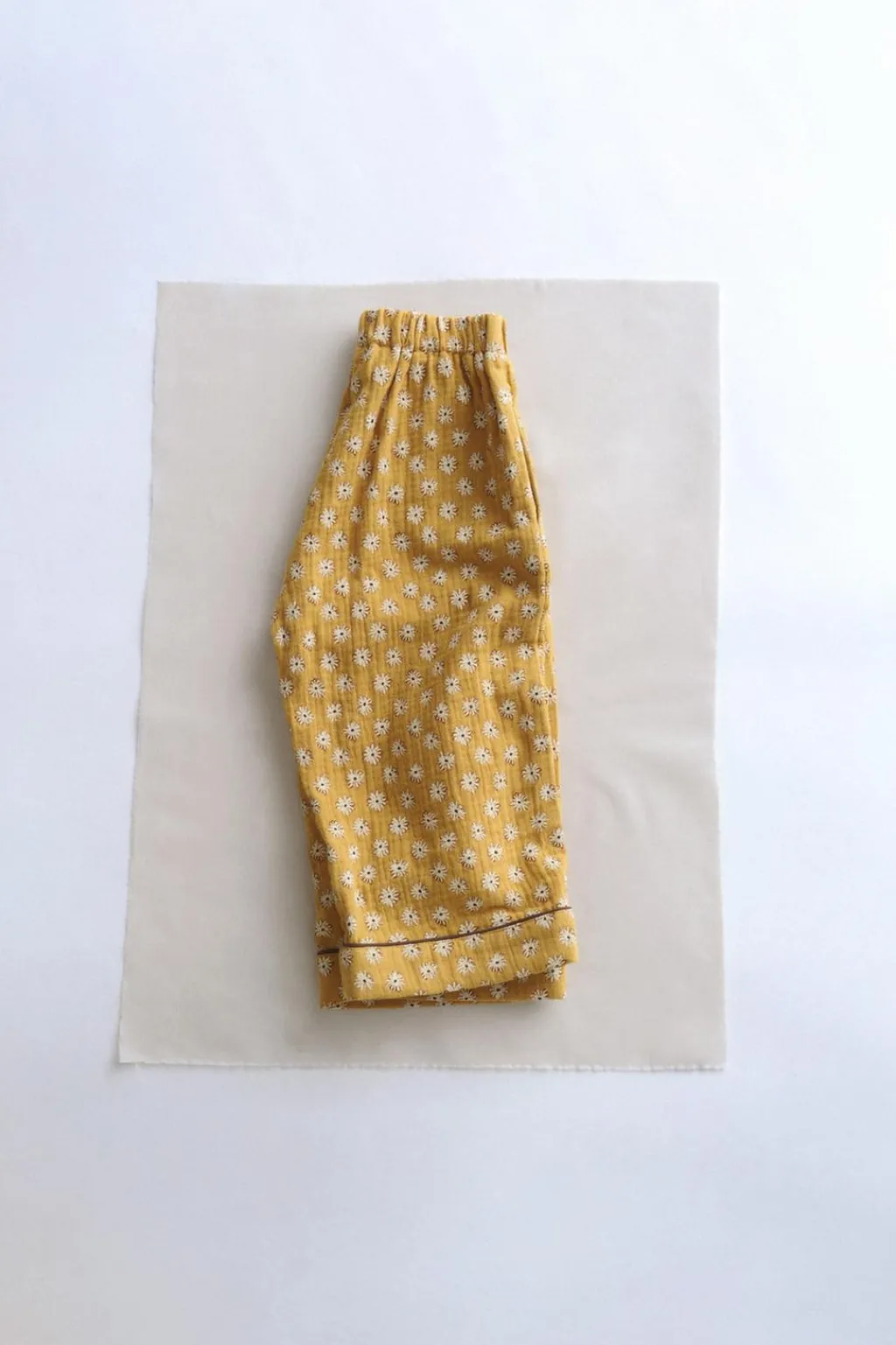 Pantalón confeccionado en un tejido de algodón con textura. Tiene la cinturilla elástica para aportar comodidad. Los bolsillos están ocultos en la costura lateral. El detalle está en el vivo color a contraste del bajo.