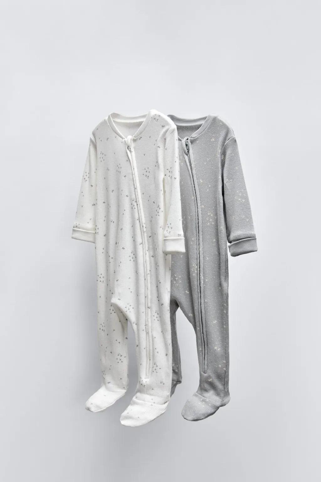 Pack de dos pijamas enteros con cuello redondo y manga larga. Cierre con cremallera en delantero.