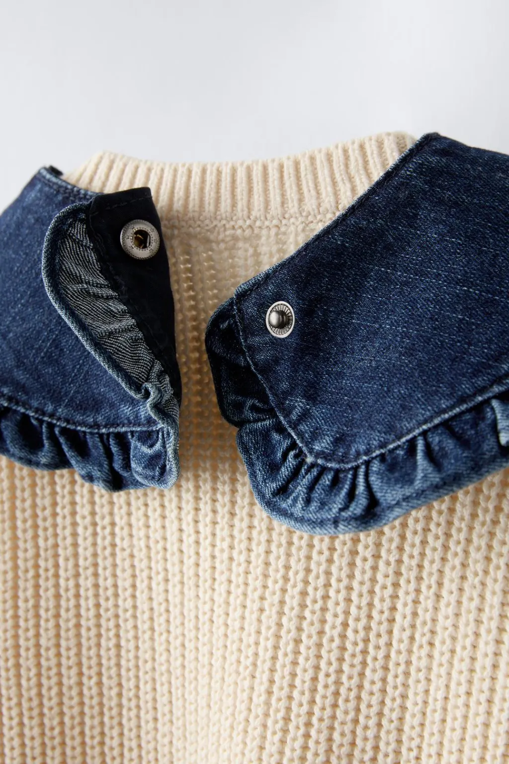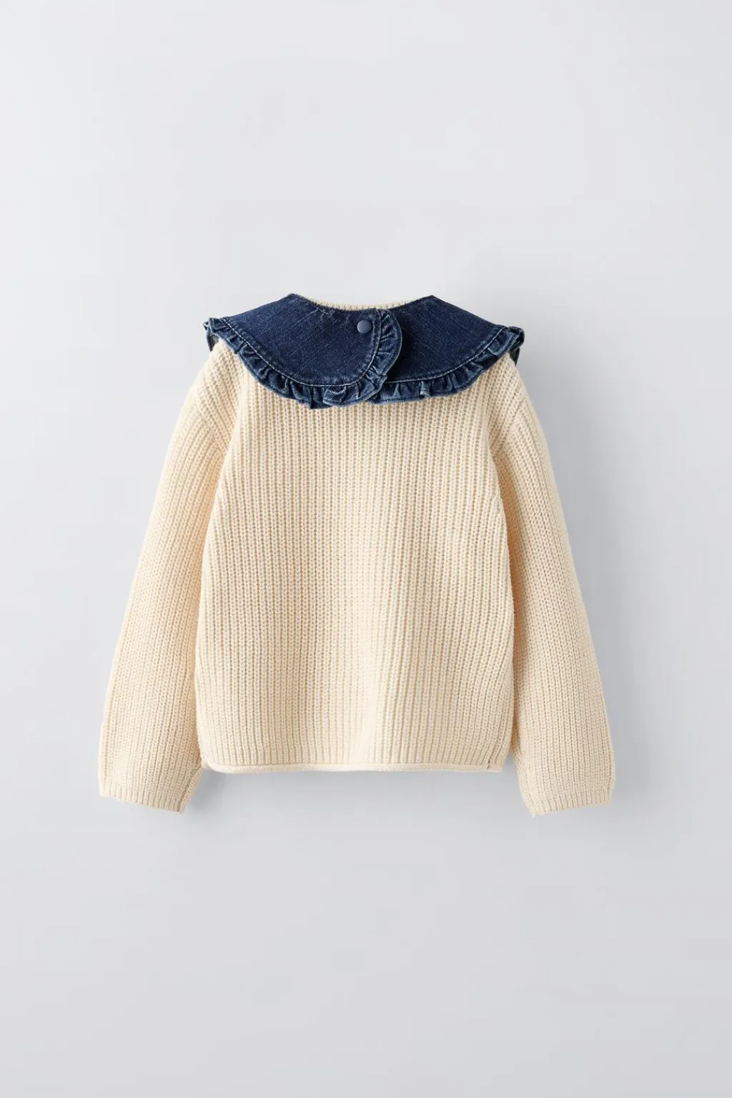 Jersey con cuello desmontable en tejido denim con cierre tipo presión y manga larga.