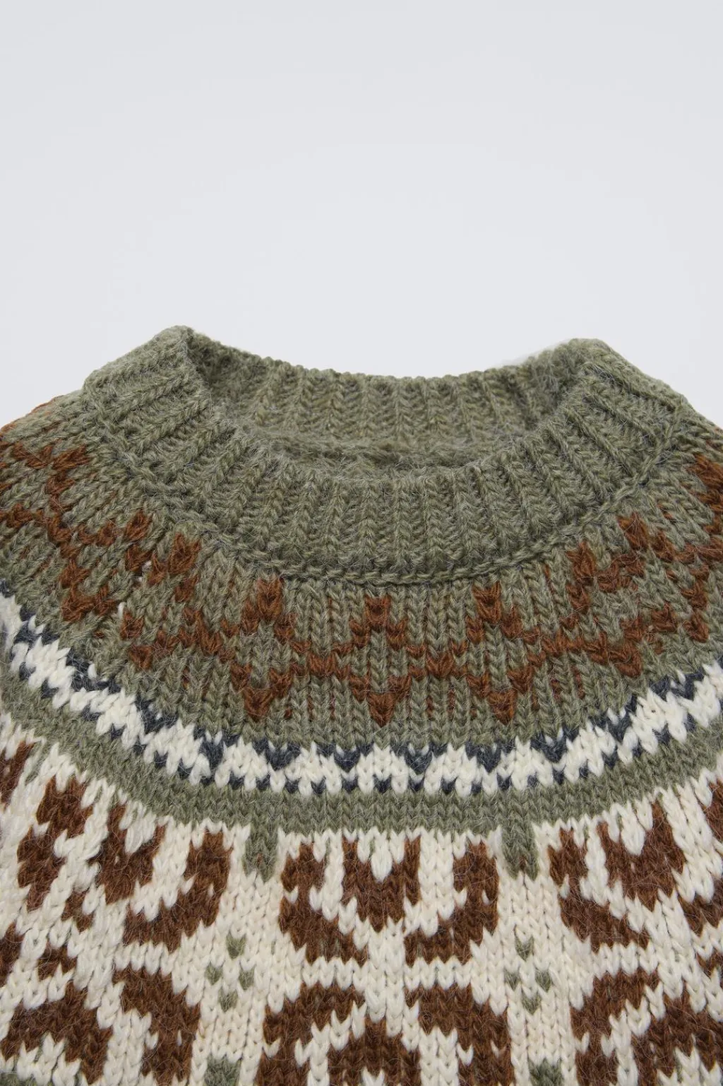 Jersey punto con cuello redondo y manga larga. Detalle jacquard.