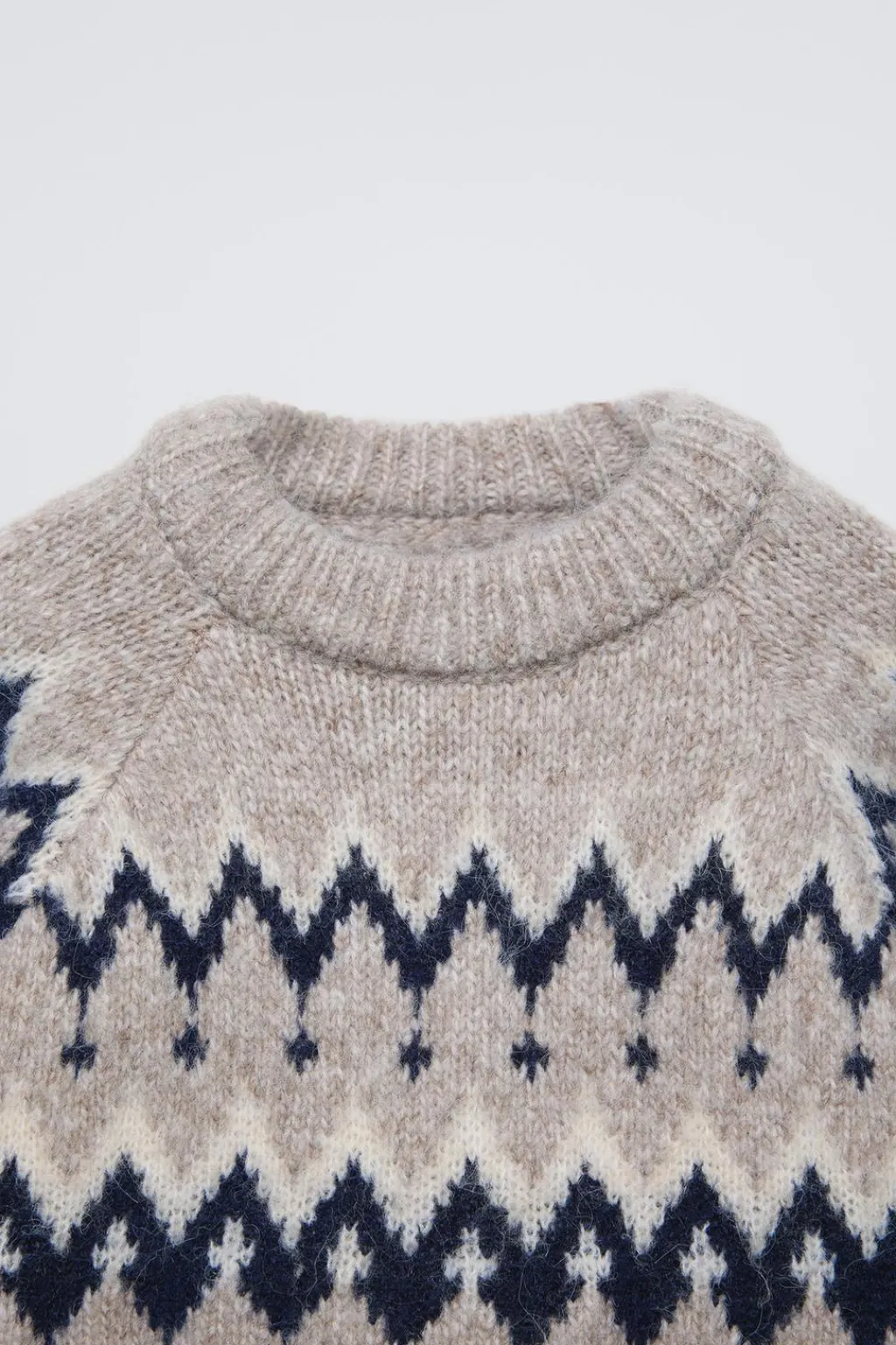 Jersey punto con cuello redondo y manga larga. Detalle jacquard.