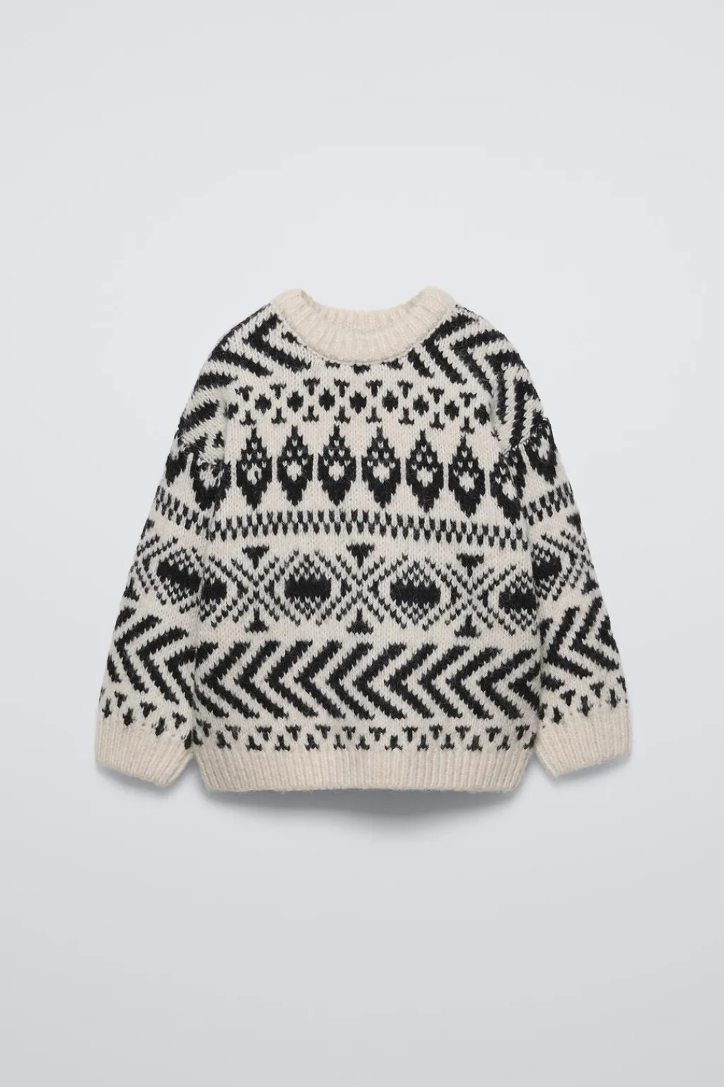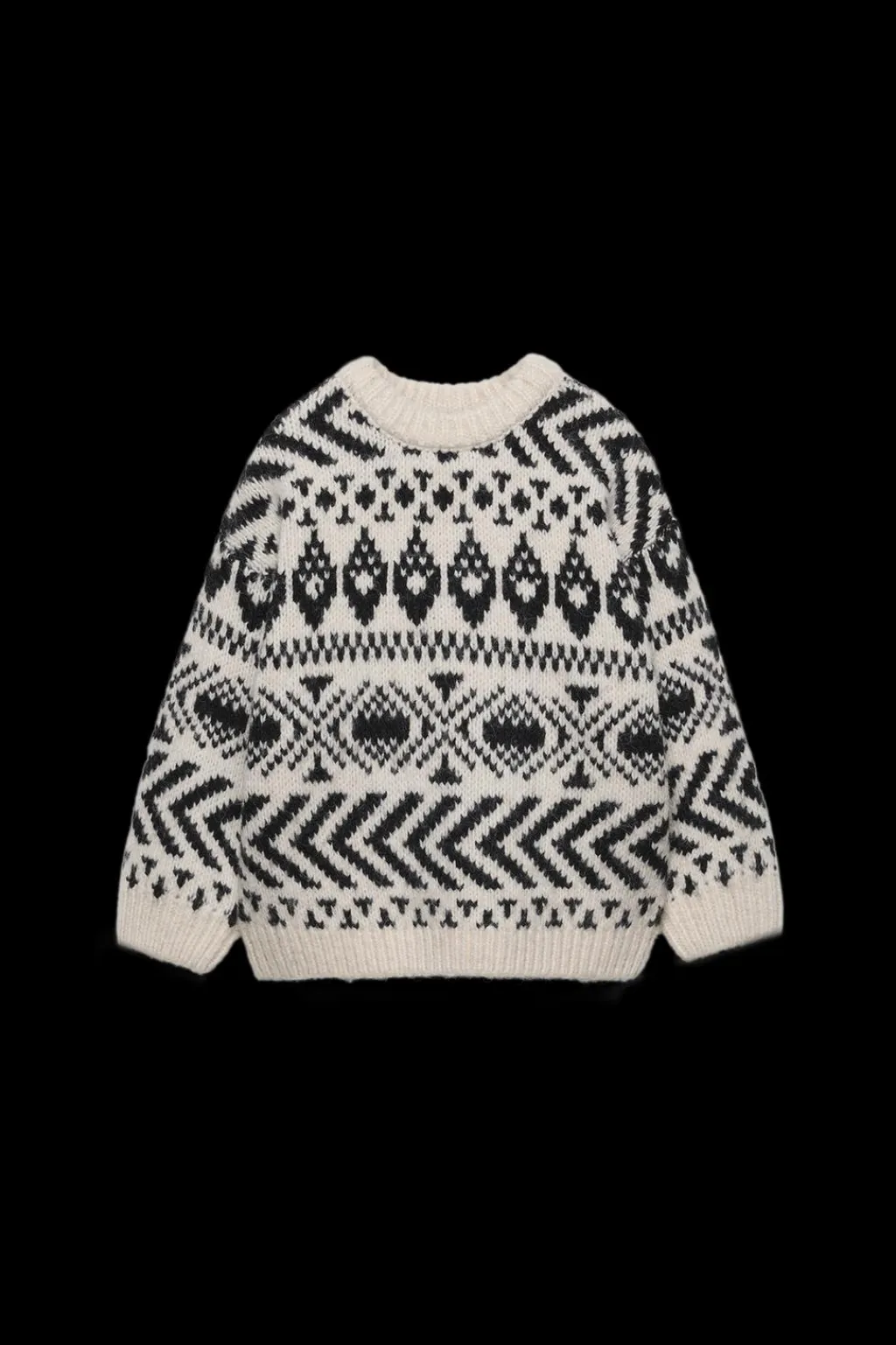 Jersey punto con cuello redondo y manga larga. Estampado jaquard.
