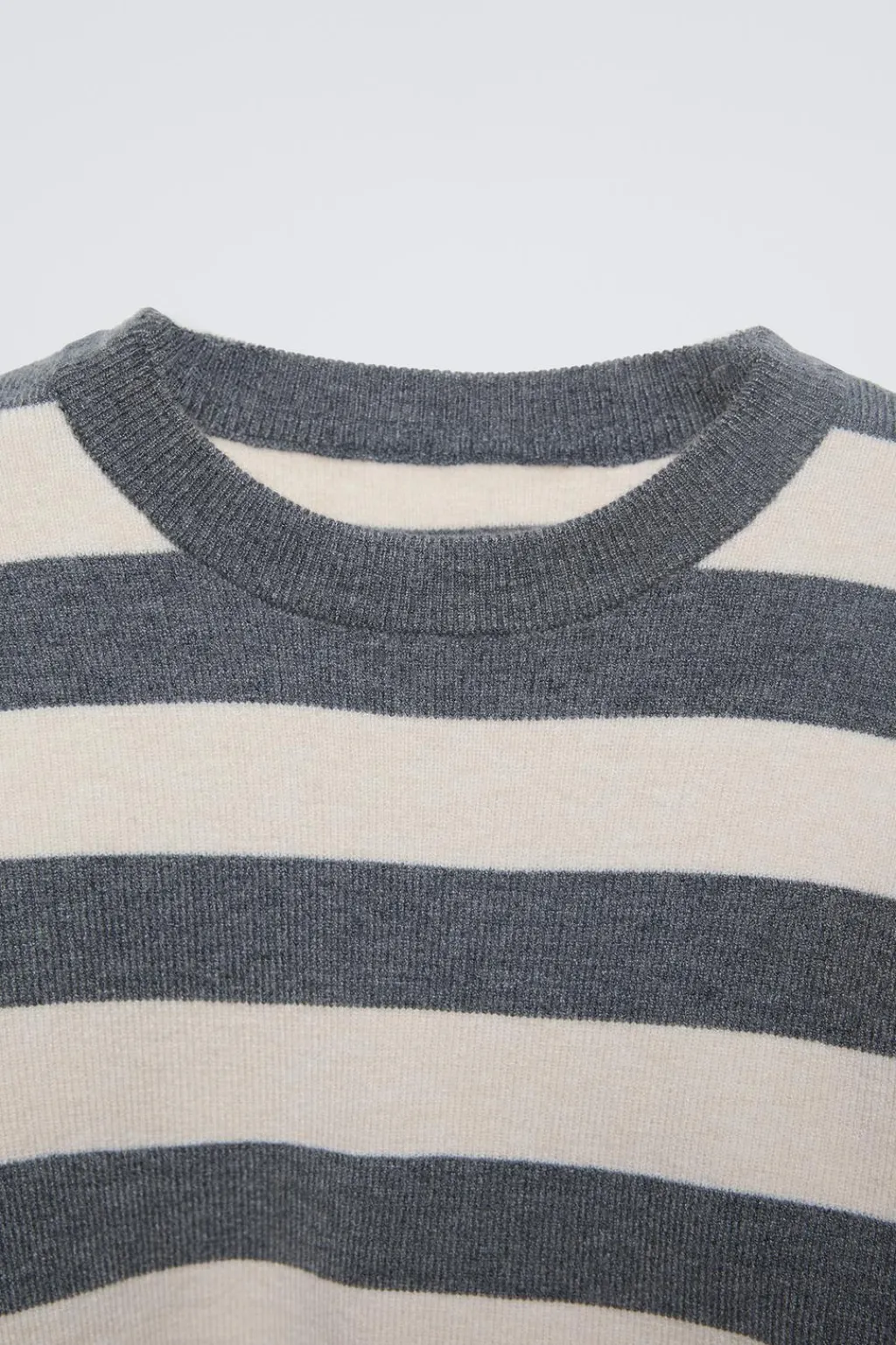 Jersey con cuello redondo y manga larga. Acabados en rib. Estampado rayas.