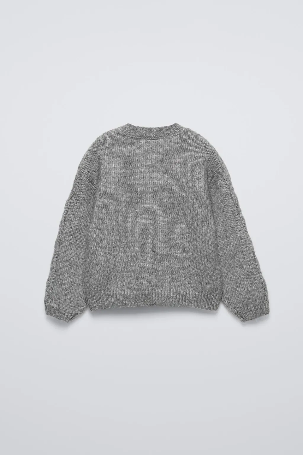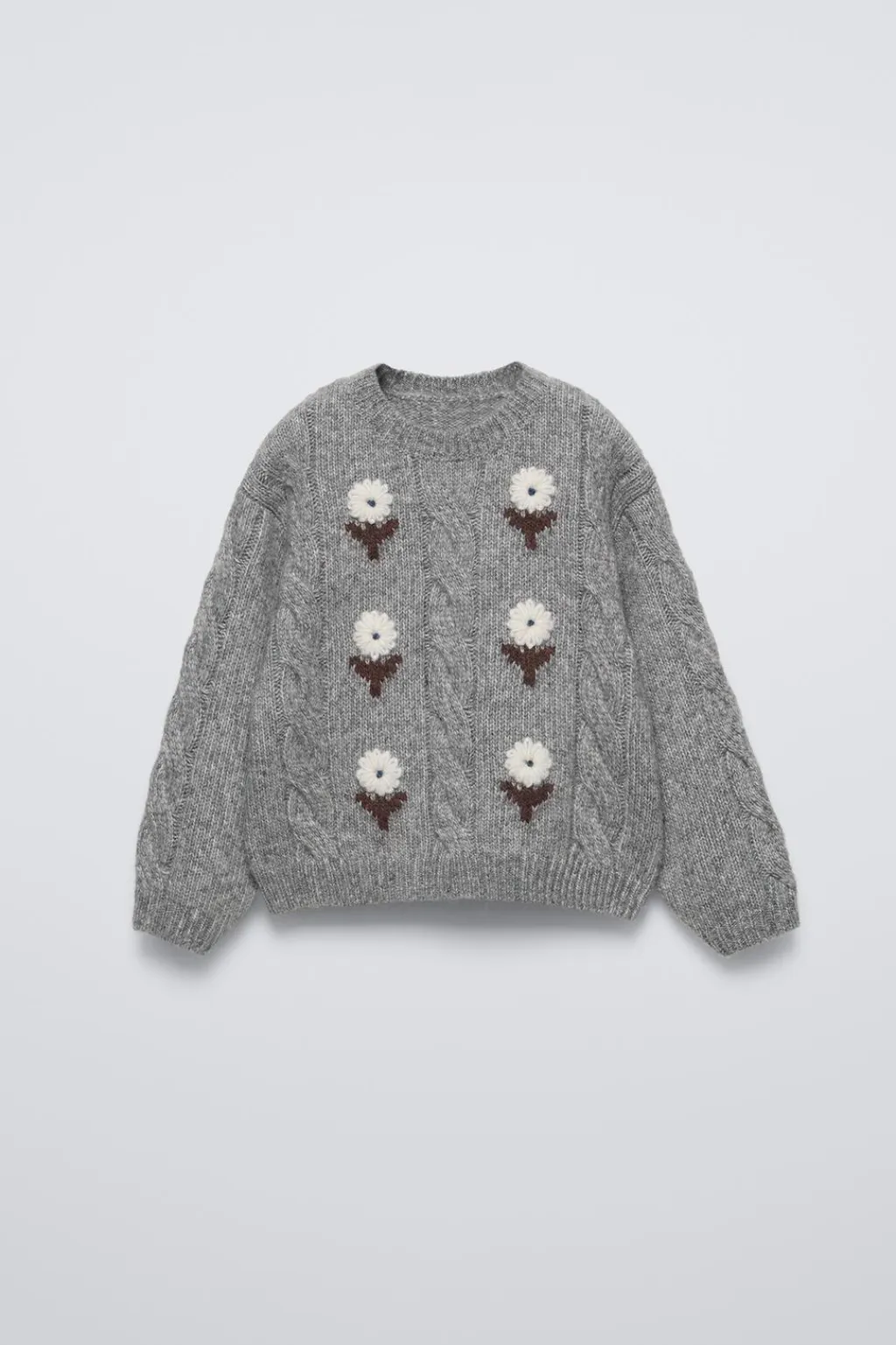 Jersey de. punto con cuello redondo y manga larga. Detalle flores bordadas en delantero y mangas.