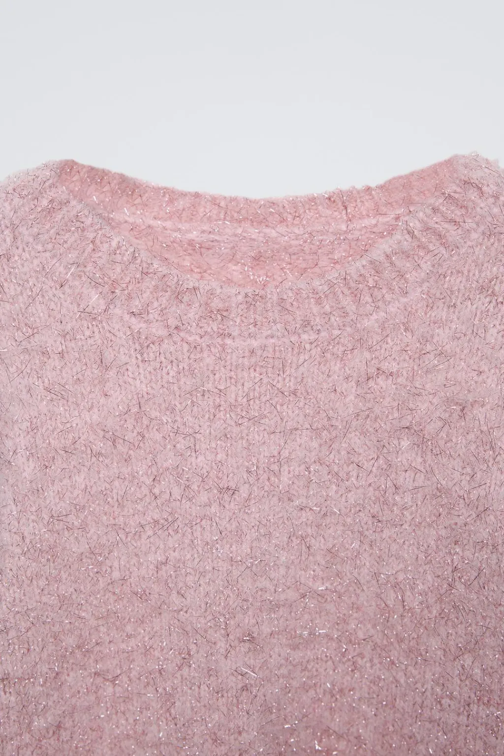 Jersey con cuello redondo y manga larga. Detalle brillos.